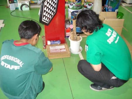 アライメントの測定器の前にリーダーと吉澤さんが・・・