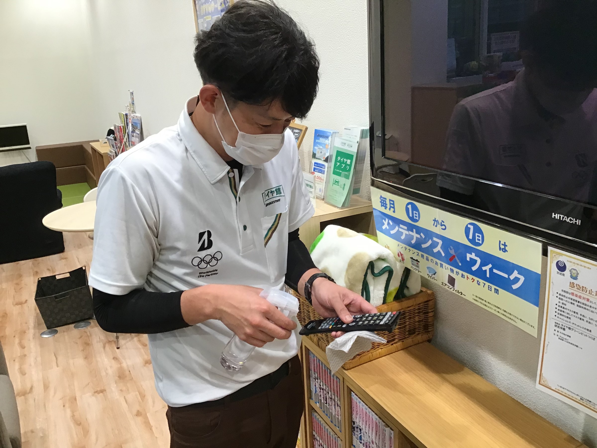 リモコンも定期的にアルコール消毒を実施しております。