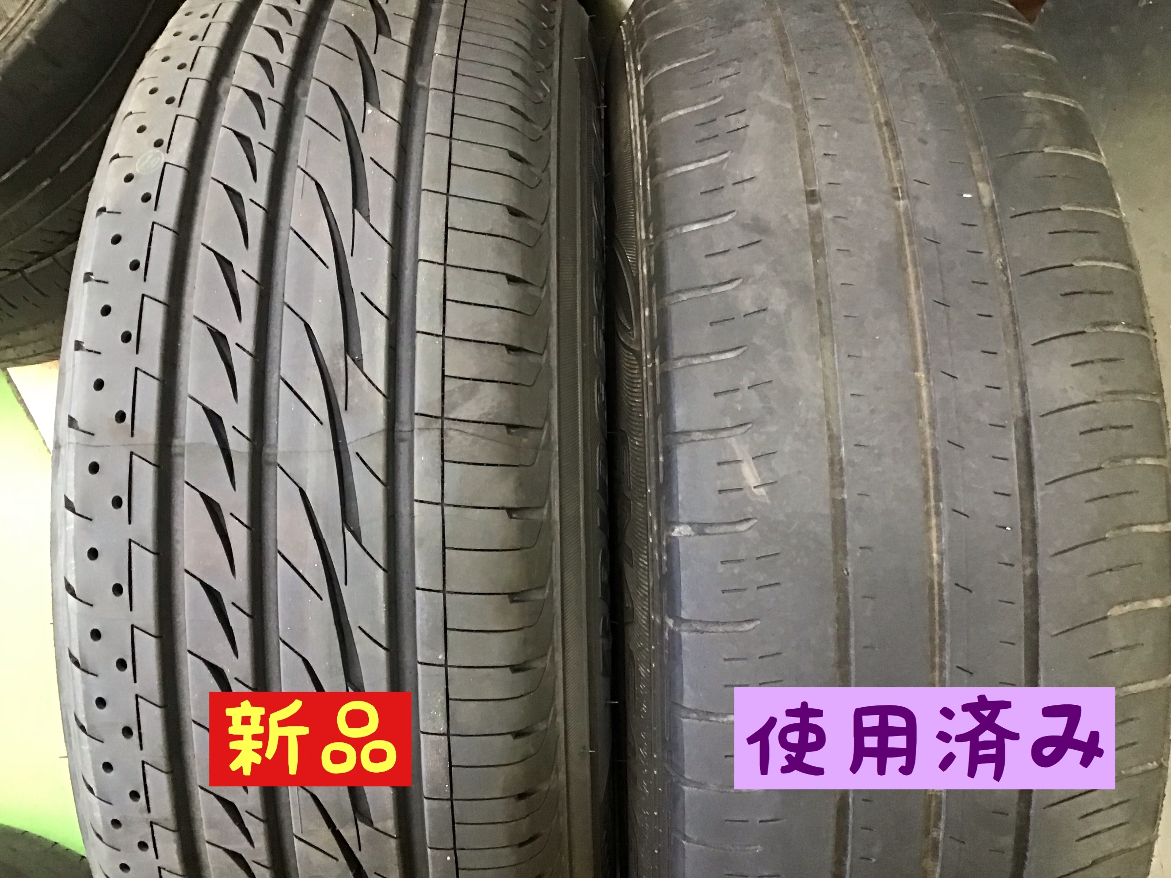 ちなみに新品と使用済みのタイヤの比較してみました。