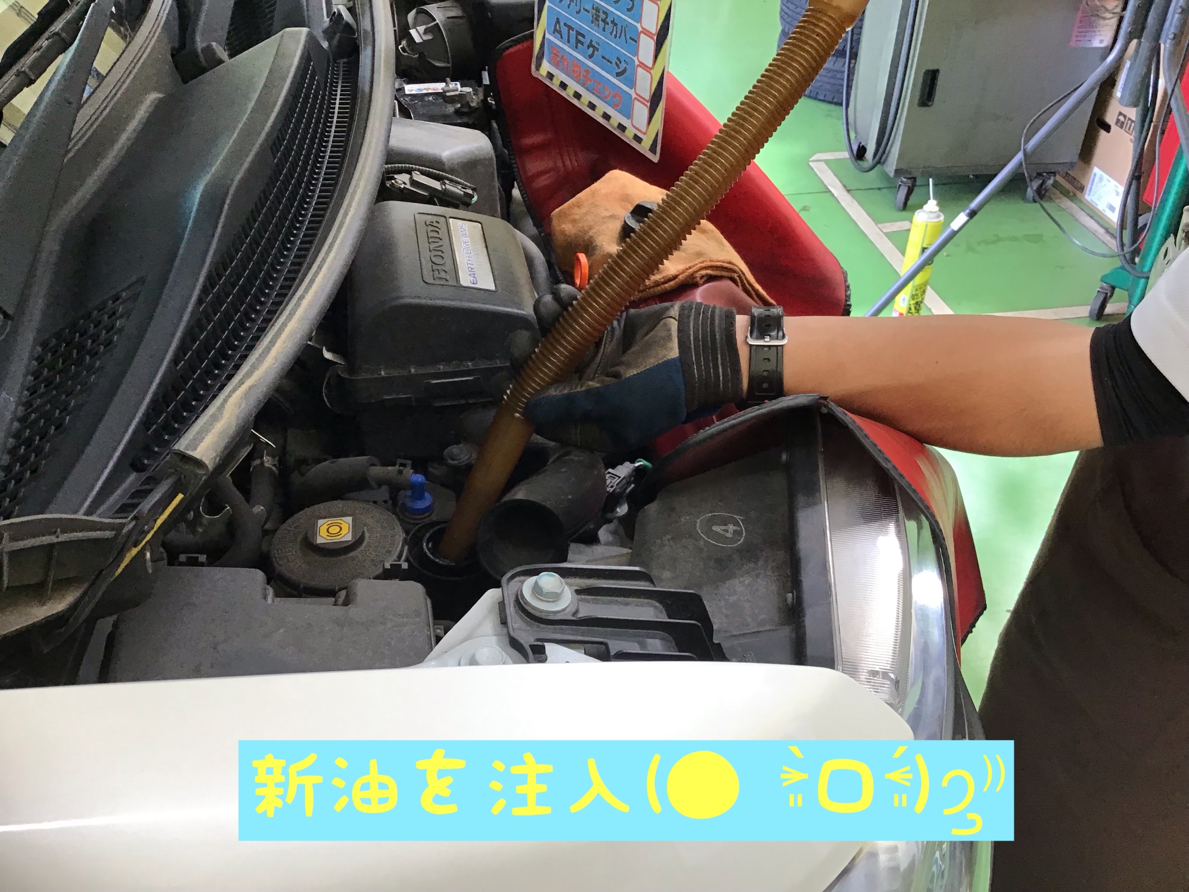 竹貫スタッフがタイヤ交換している合間に私が、オイル交換を٩( 'ω' )و