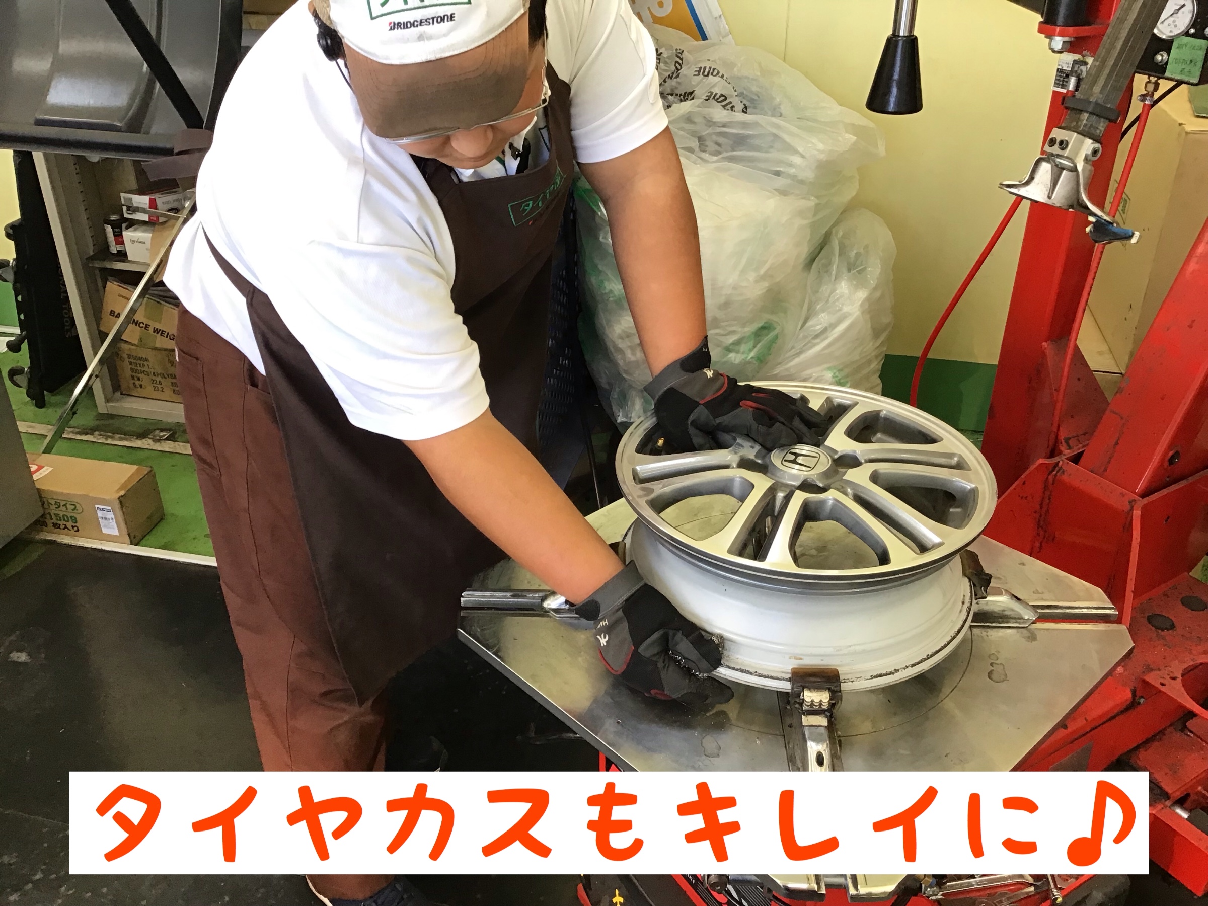 まずは竹貫スタッフによるタイヤ交換ですヽ(´▽`)/