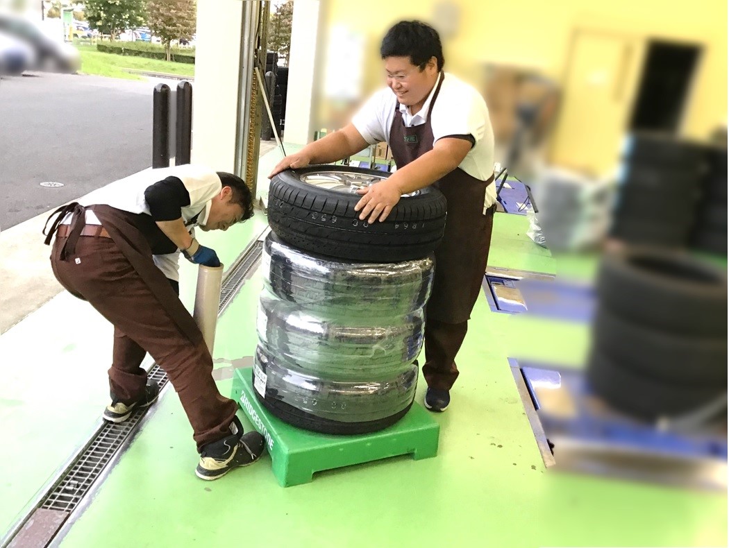 今回はタイヤだけでなく、ホイールに組み付けをしたものを展示するため、