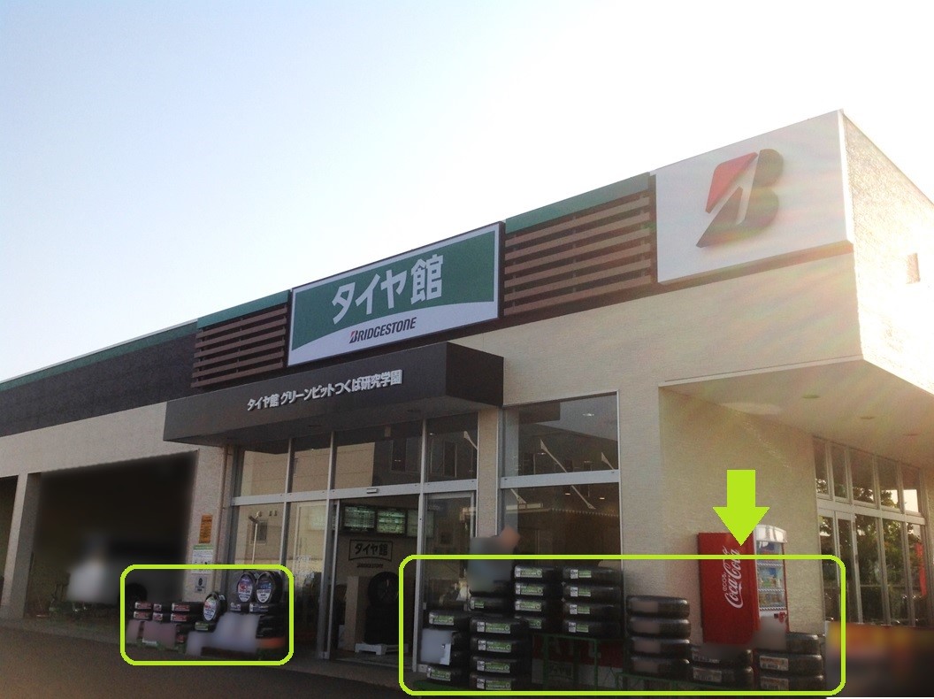 (このようにお店の前に並べている展示タイヤです)