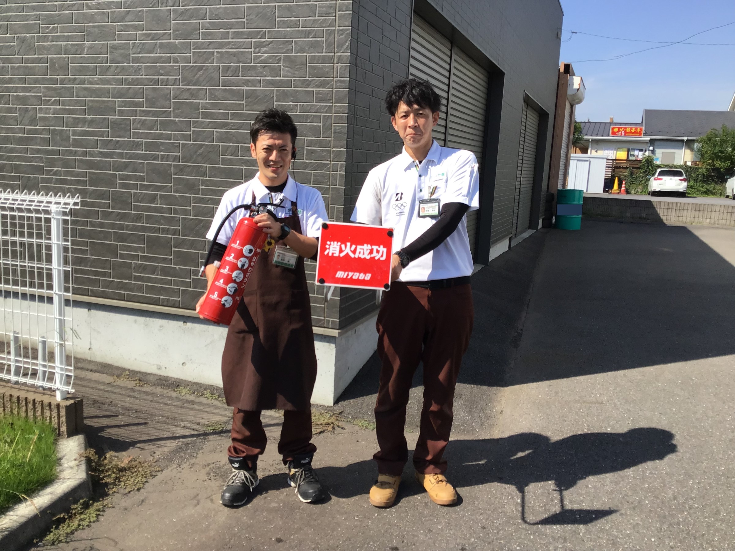 吉澤店長(右)は大きな炎を想定して、少し遠くから・・・