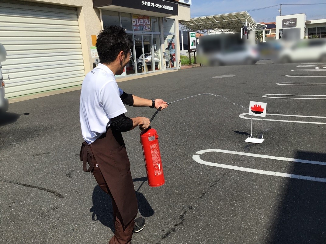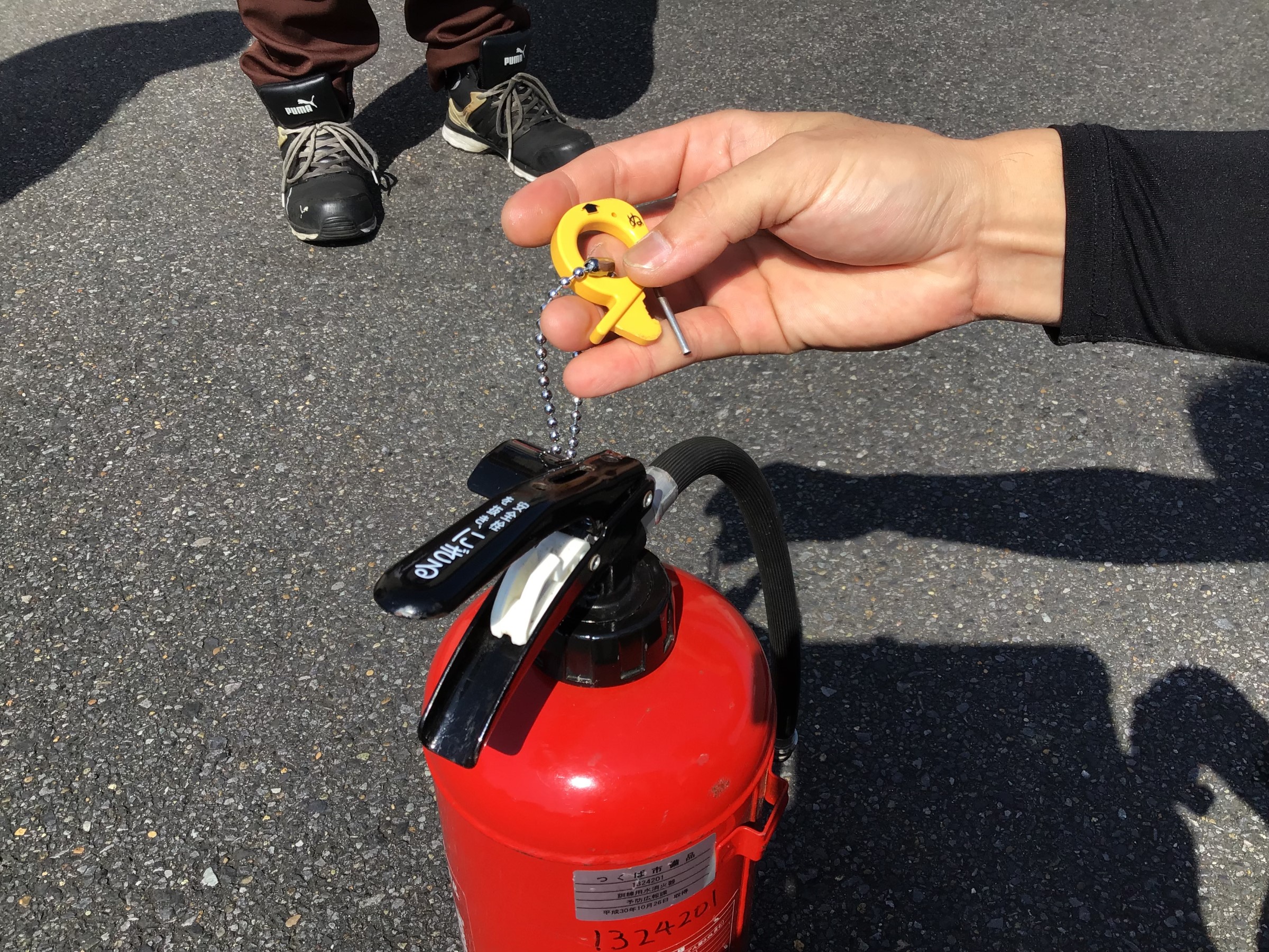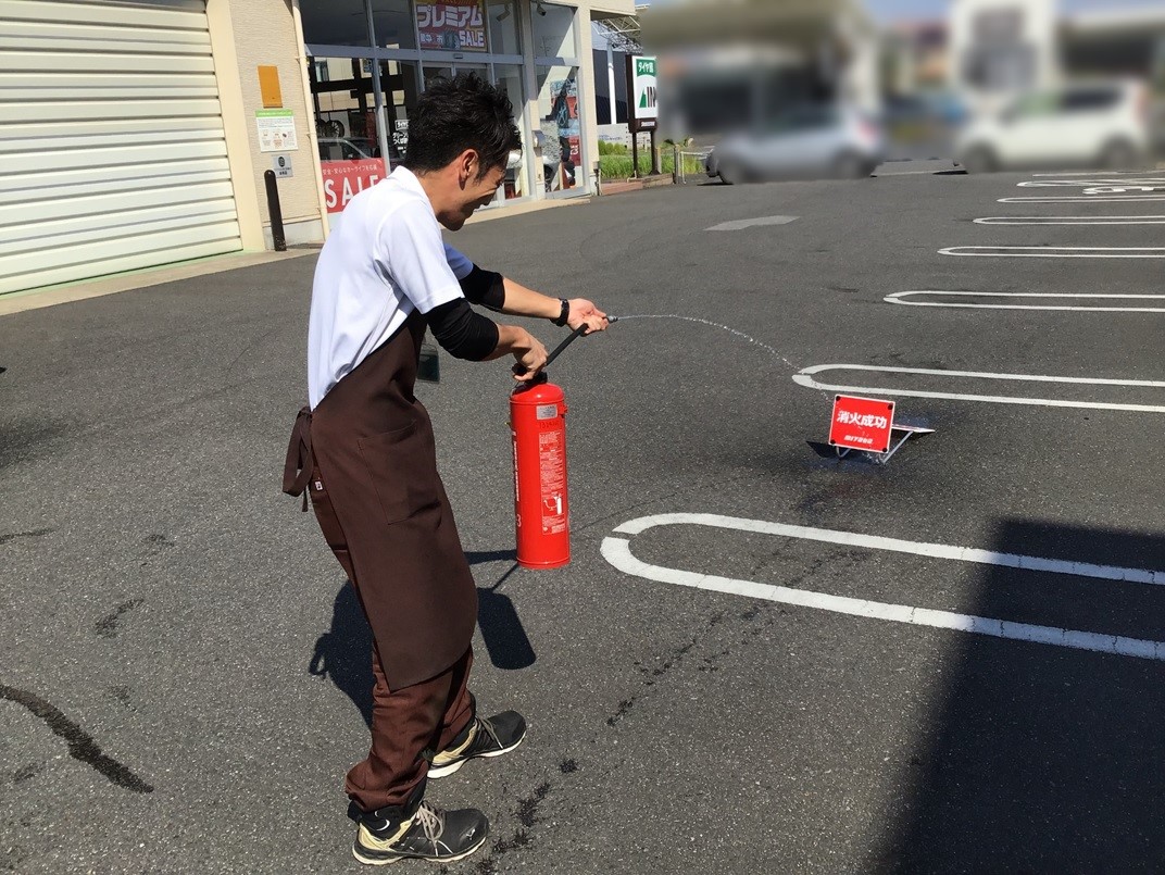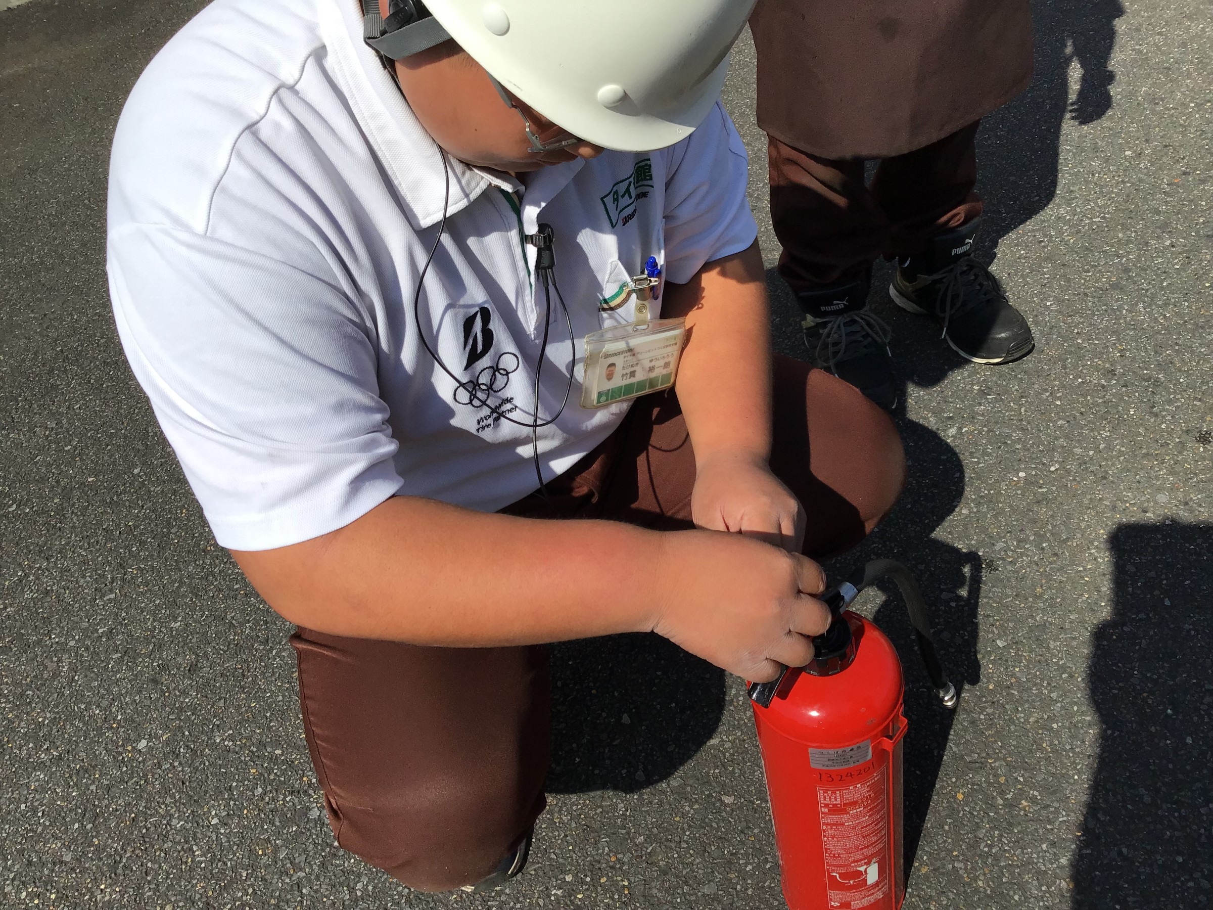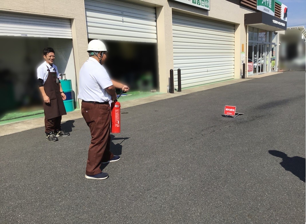 消火器の扱いに慣れるよう、初期消火の訓練も行いました。