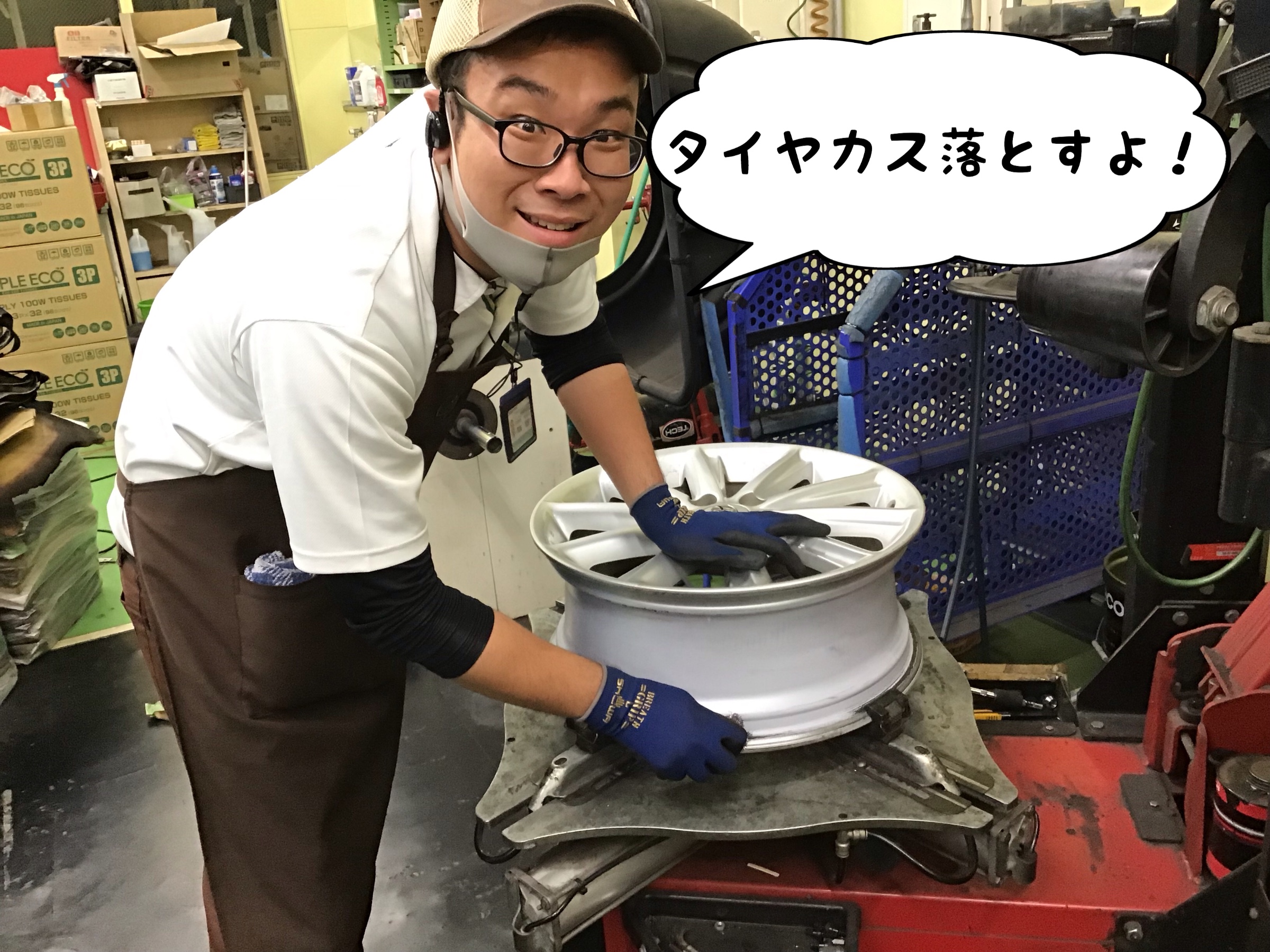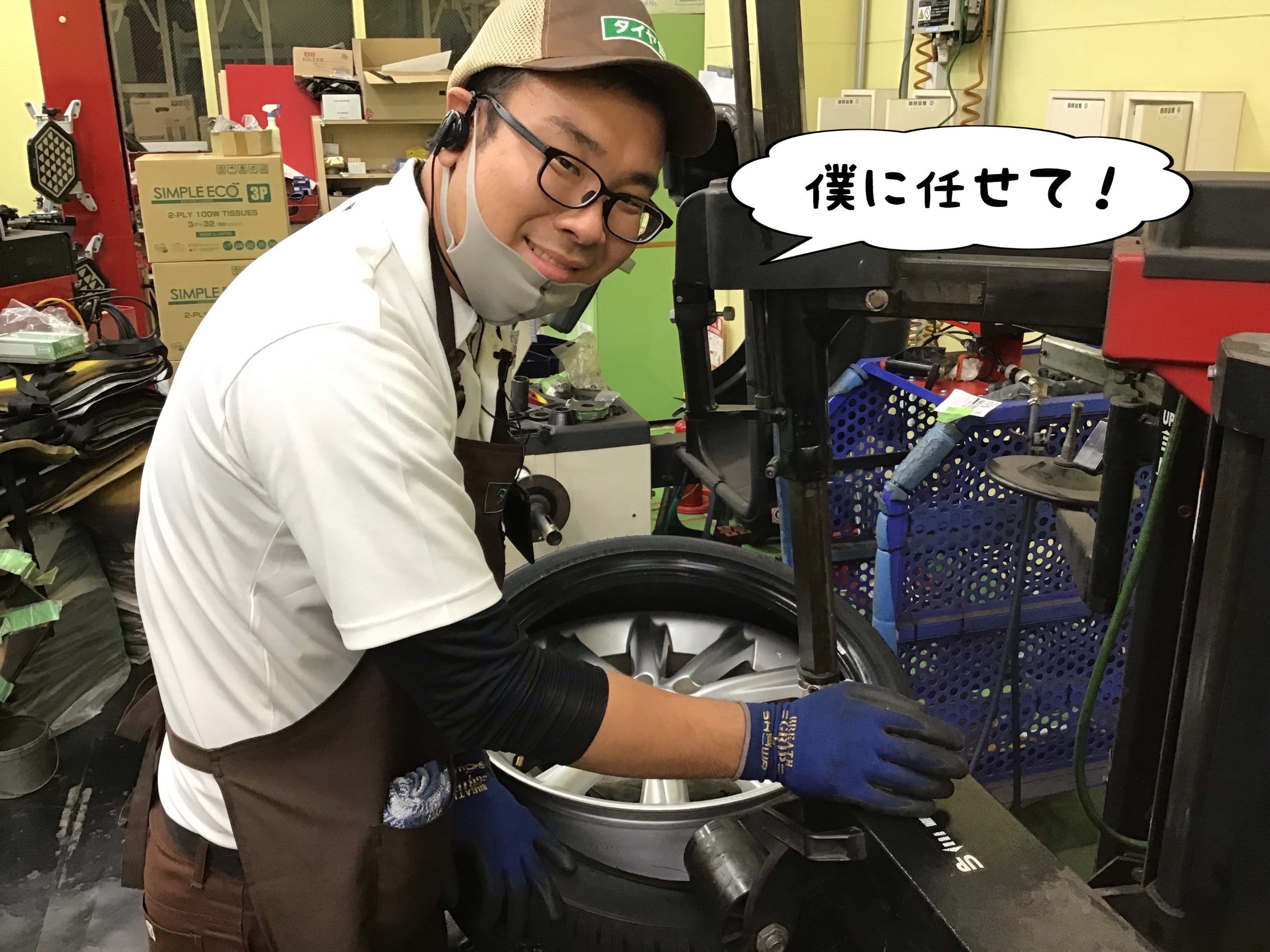 青柳スタッフにタイヤ交換をお願いします!