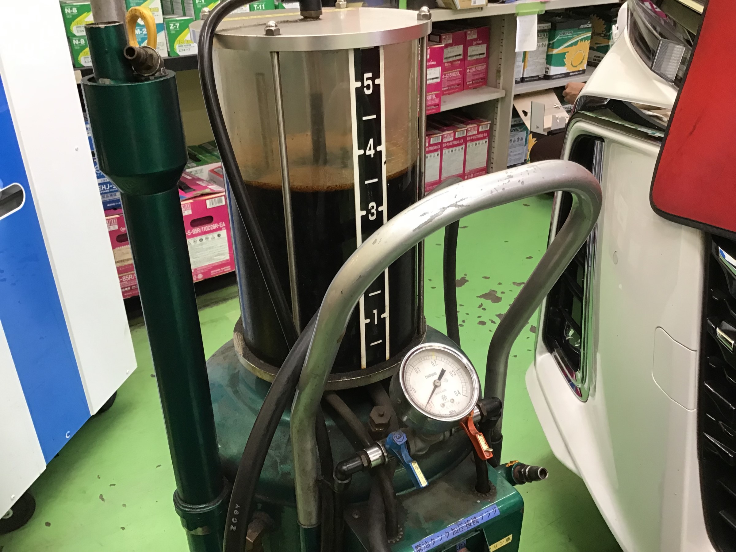 今回は「コチラ」のオイルの上抜き機を使用して交換していきます。