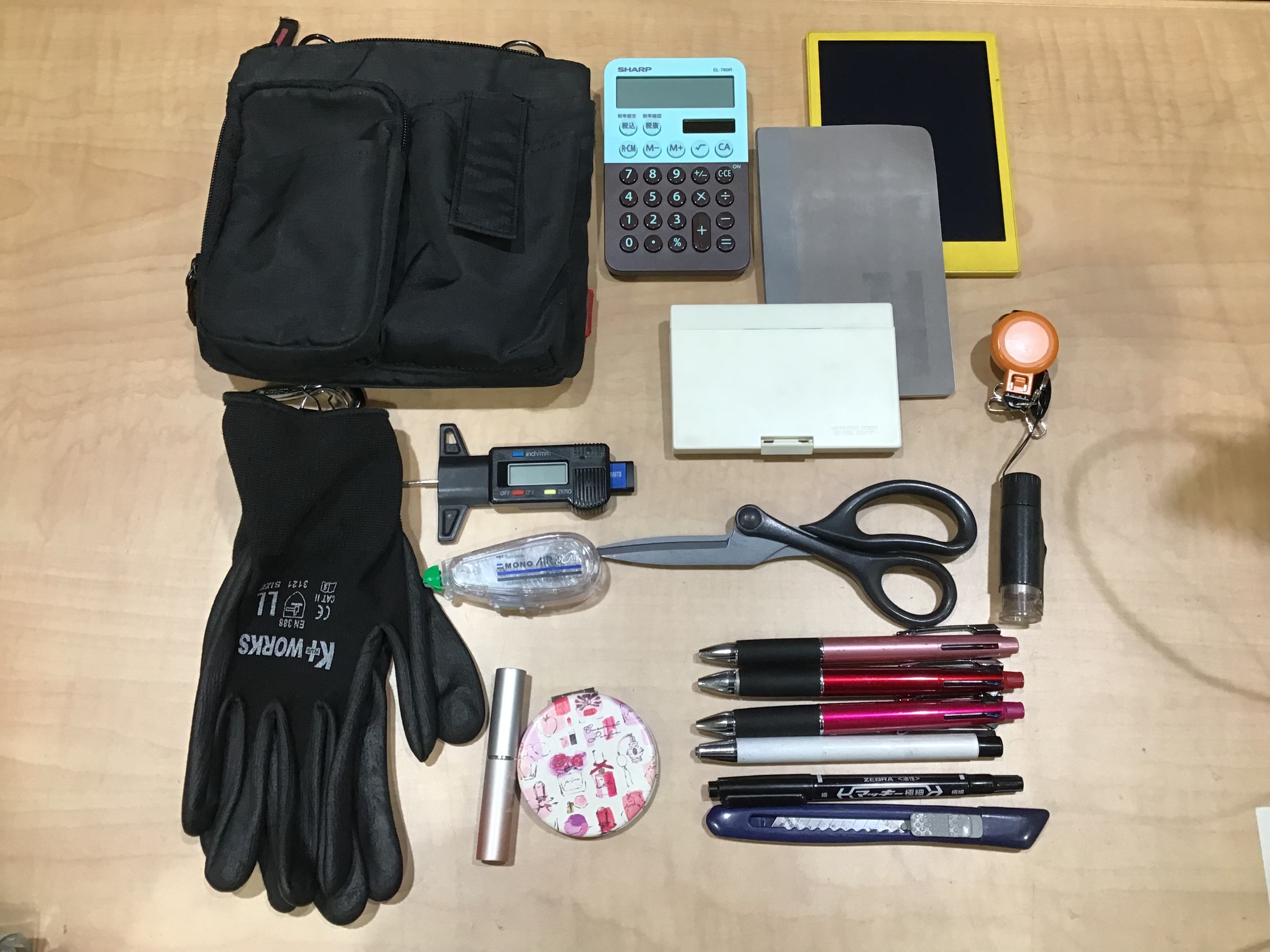 という訳で、久しぶりにポシェットの中身を広げてみました。
