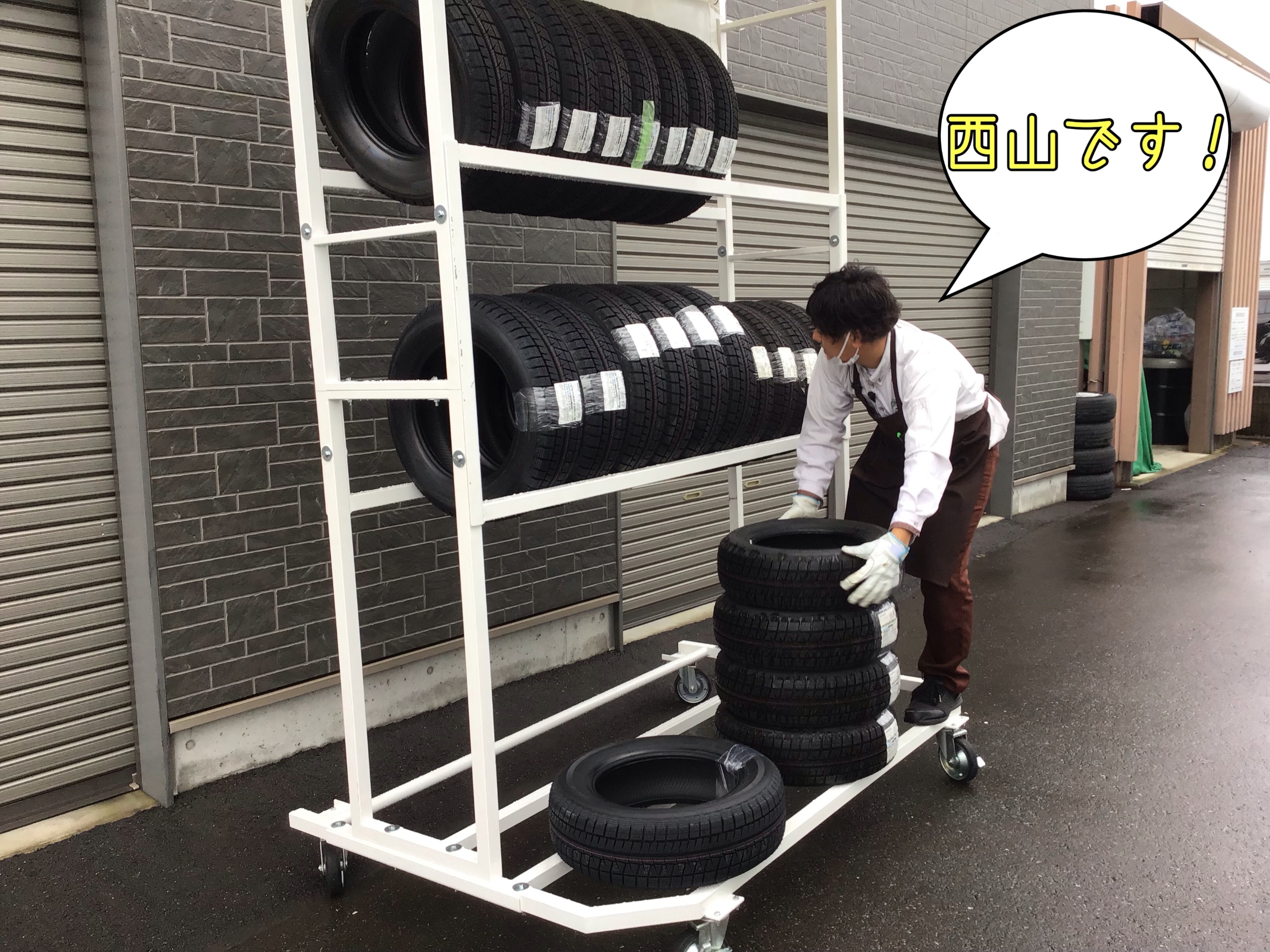 さて本日は雨上がりでタイヤの整理をする西山スタッフを覗き見していたので、写真におさめました!!