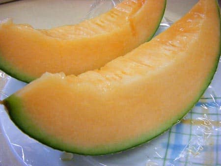 メロンの網目がとてもキレイでもったいないですが、早速包丁を入れました。