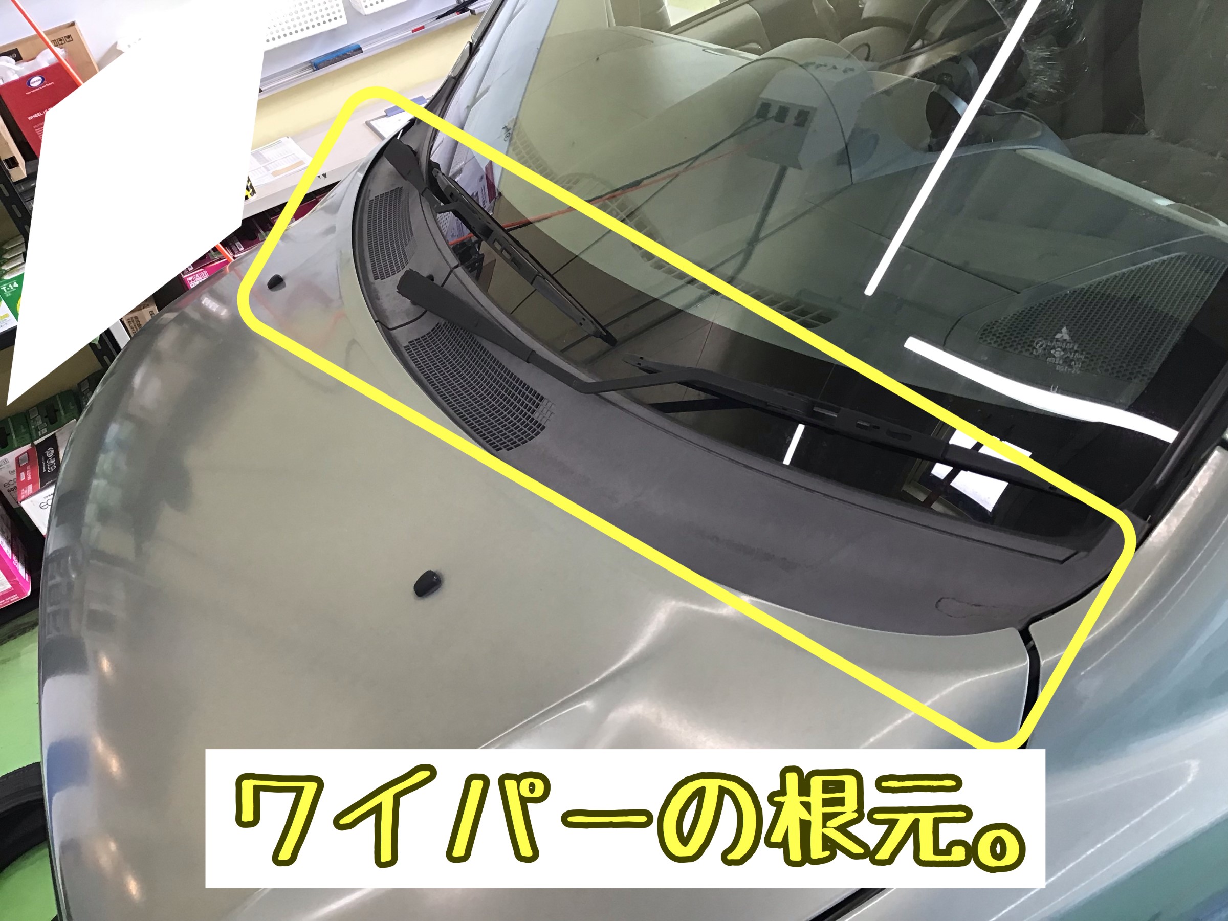 ボンネットとフロントガラスの間(ワイパーの根元ね)やフロントバンパーの
