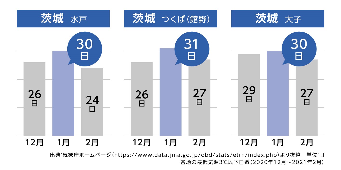 2020年12月~2021年2月は最低気温も低く、