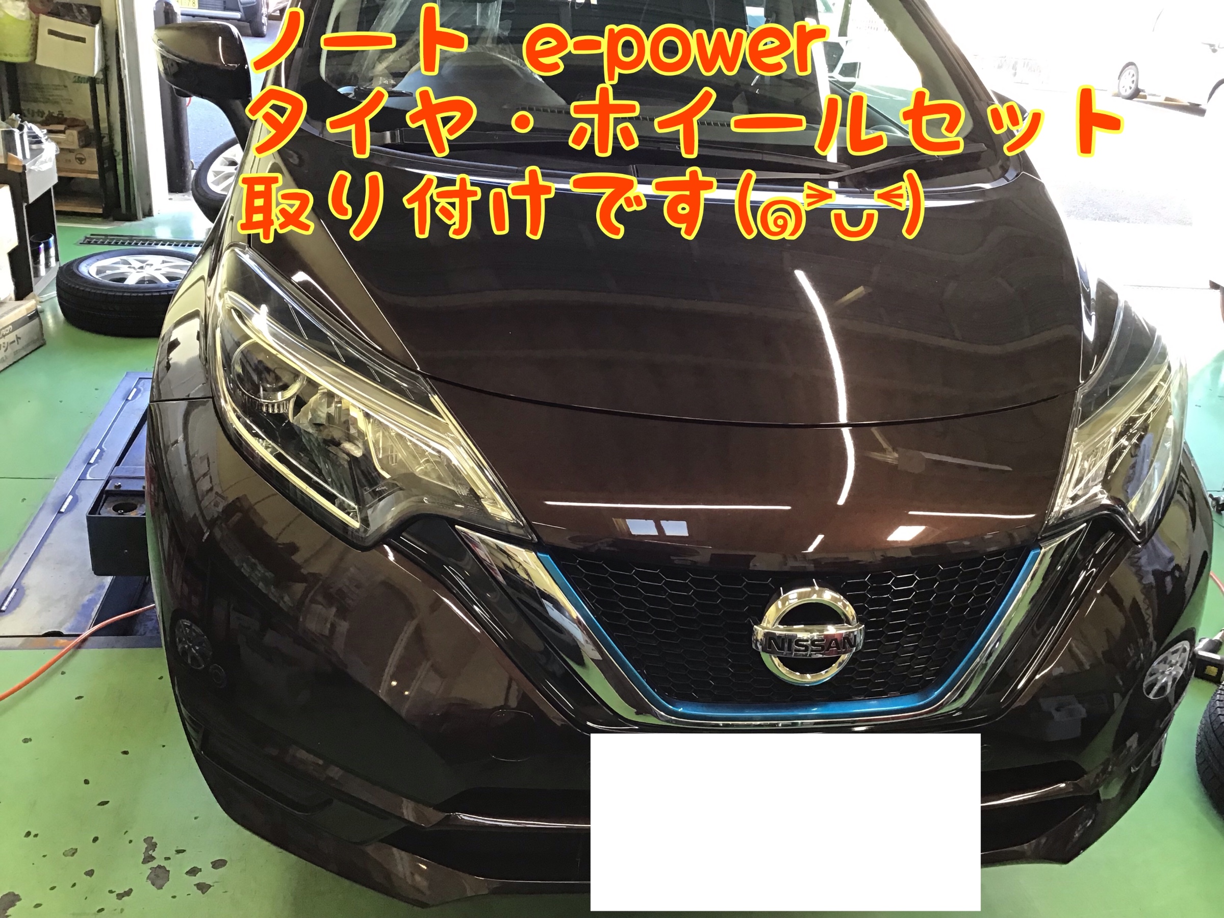 本日は、日産 ノート e-power のタイヤ・ホイールセットの取り付けをしましたのでご紹介いたします!