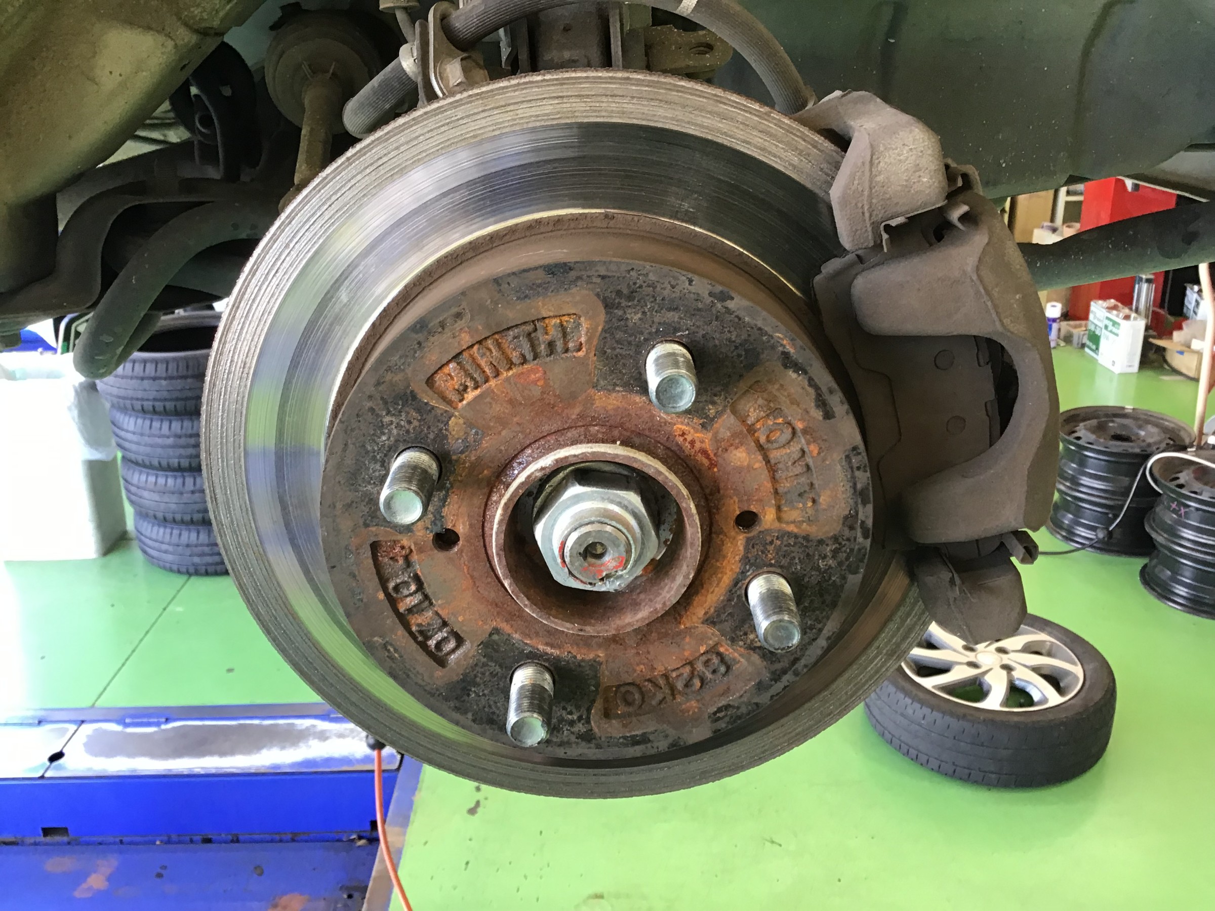 ちなみに錆が進行しすぎると固着が起こり万が一、自身で外さないといけない状況やご自宅での履き替え時にホイールナットを外してもタイヤが外れない!なんてことも起こります。( ゚Д゚)コワイ!