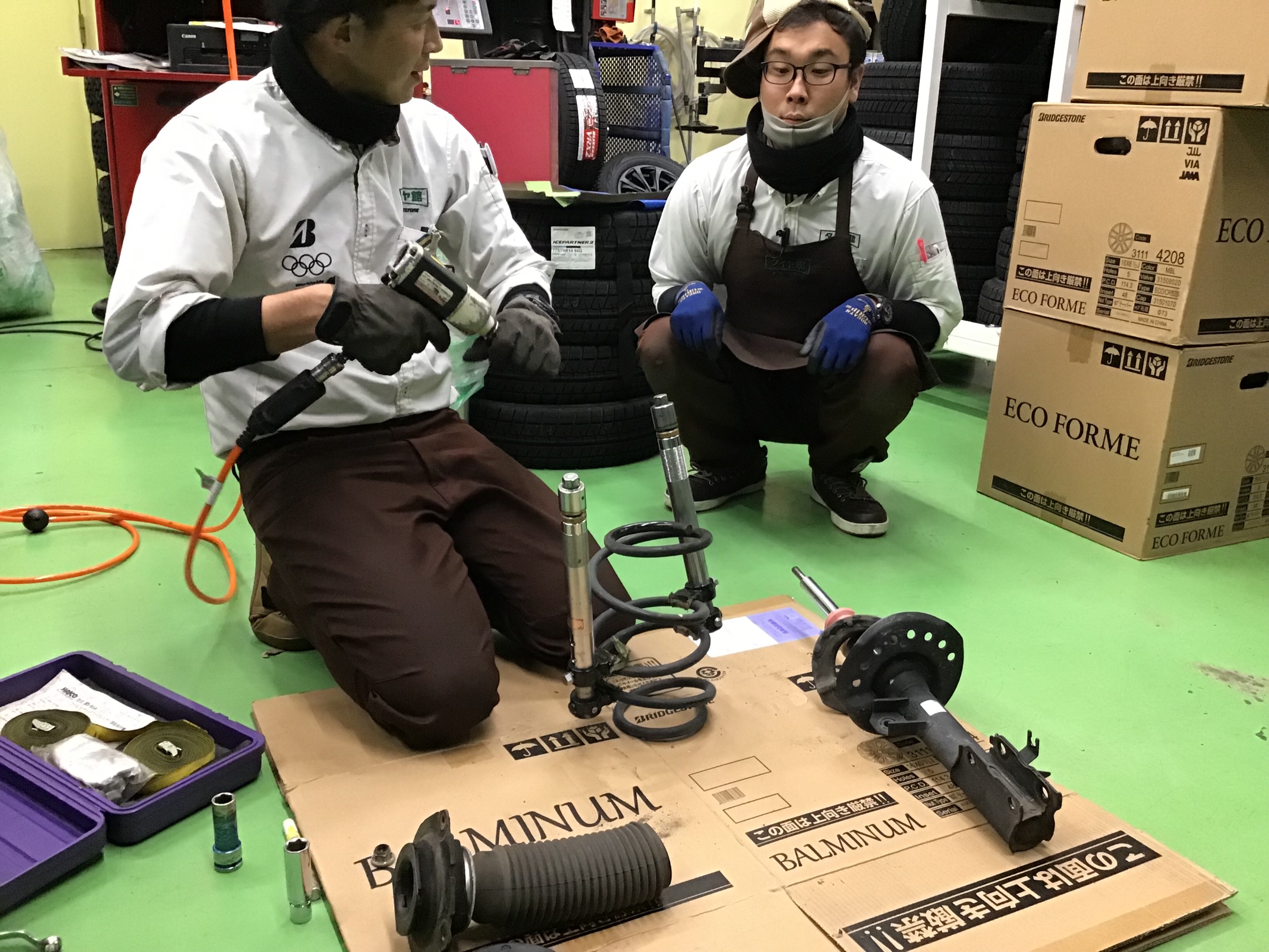 青柳スタッフは組み付け作業が終わったのか、別の作業をしている吉澤店長のもとに、、、