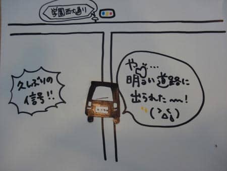 なんとか走る内に、「学園西大通り」の表示が・・・これで帰れる!(*´▽`)