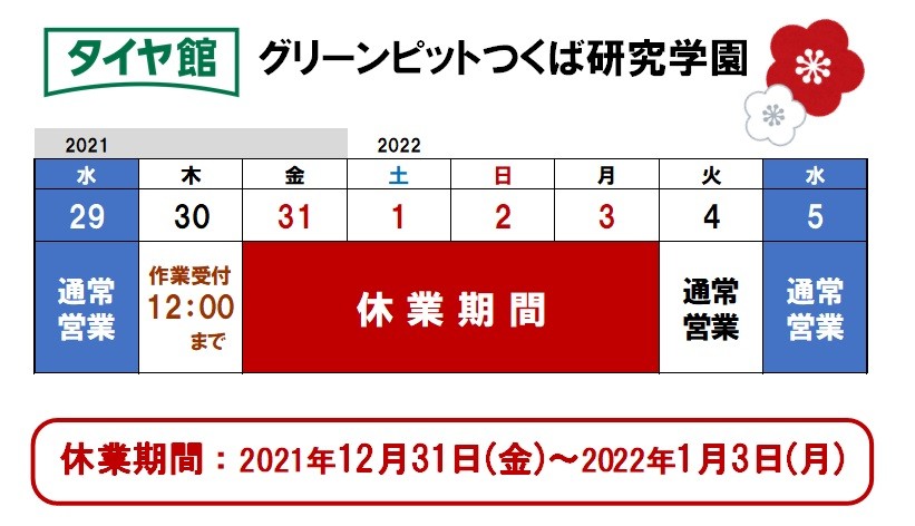 年内最終営業日の 30日(木)は作業受付が12:00まで となります。