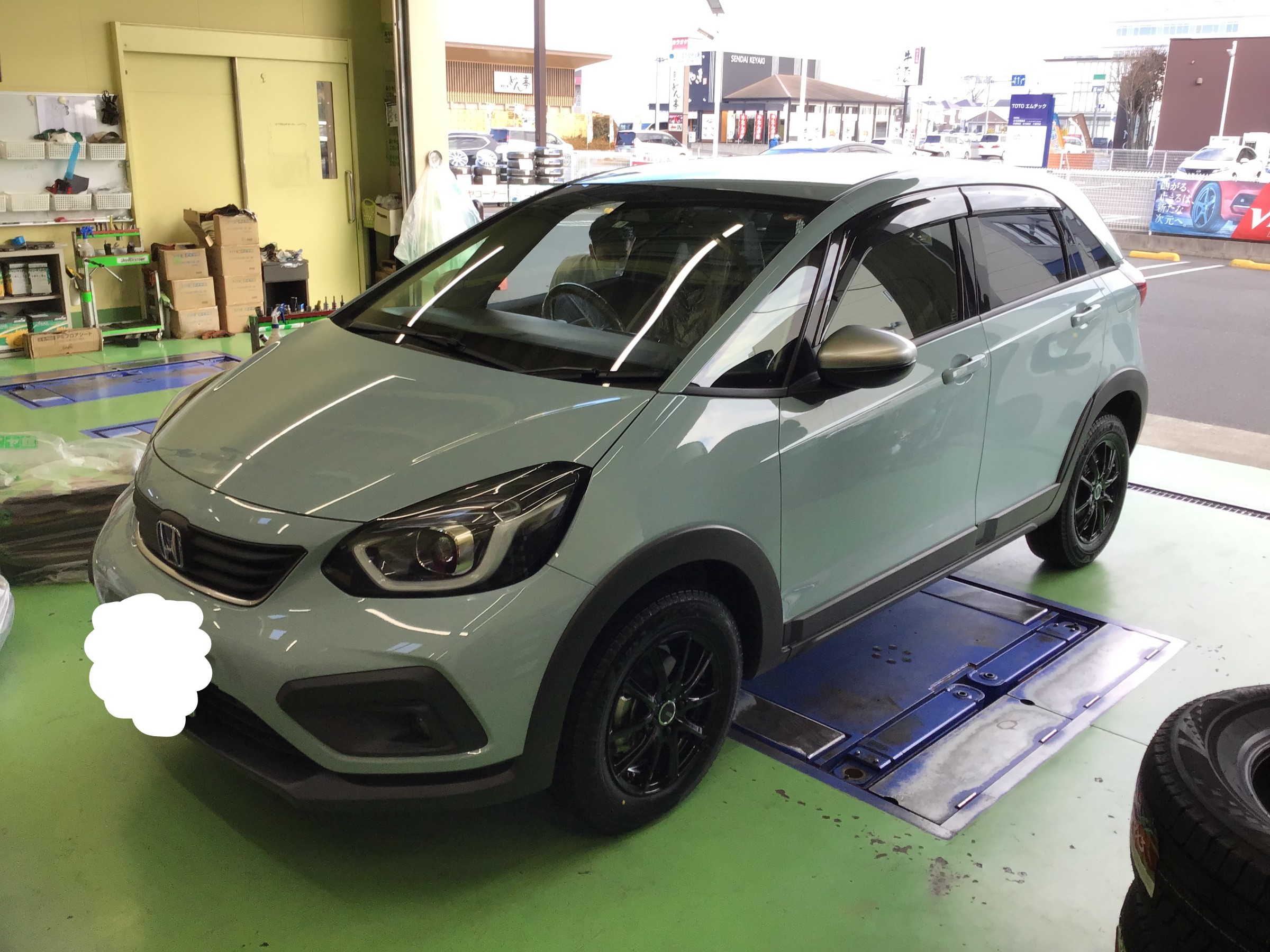 さて早速リフトアップされている「フィットクロスター」ですがフェンダー部の樹脂パーツに合わせて今回は黒系のホイールでまとめていこうと思います。