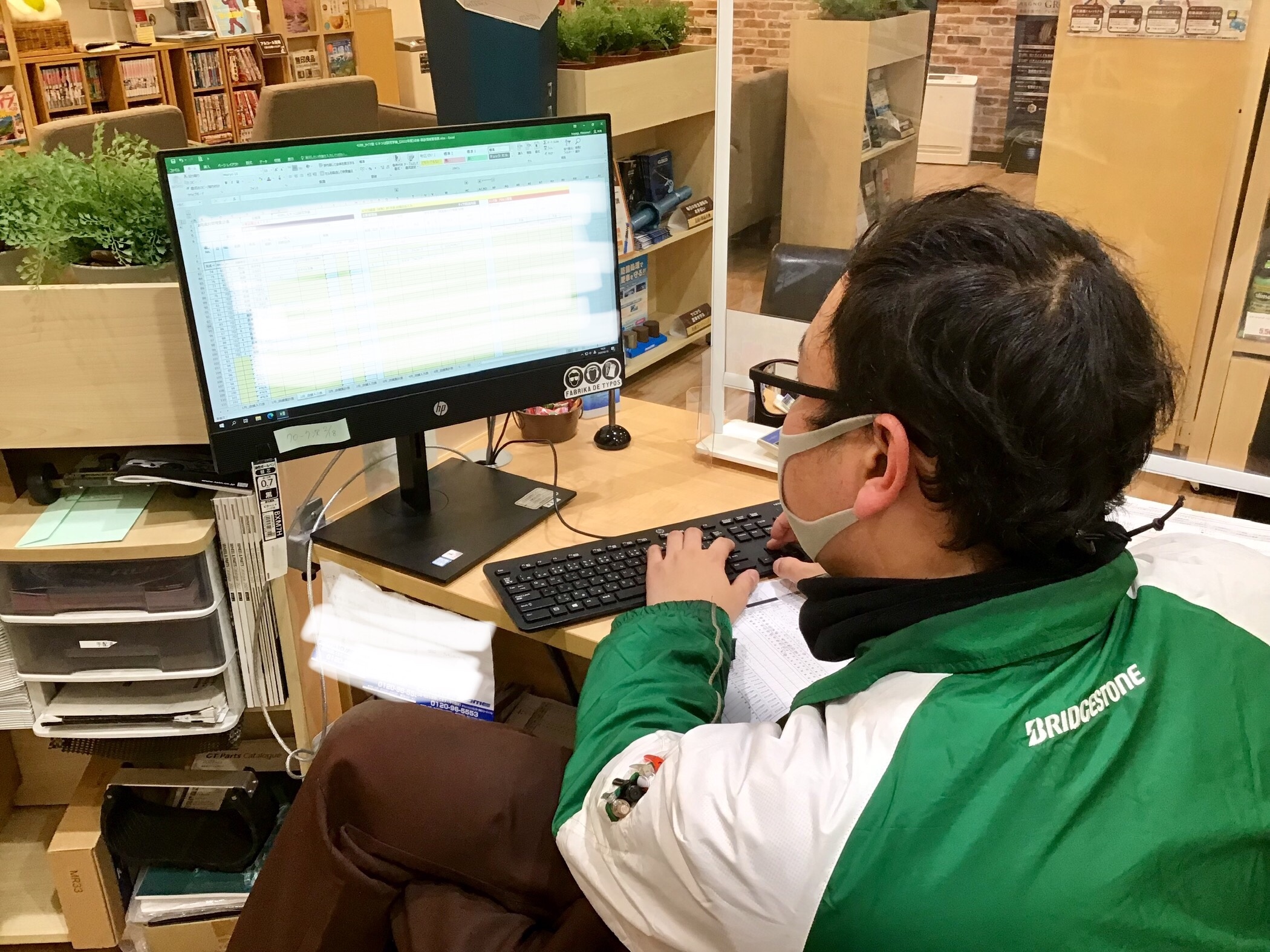 青柳スタッフが来店客数をエクセルに入力中d( ̄  ̄)