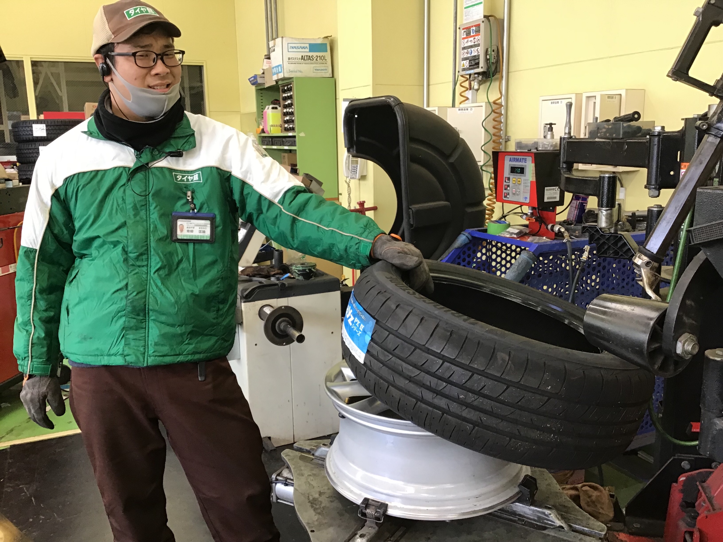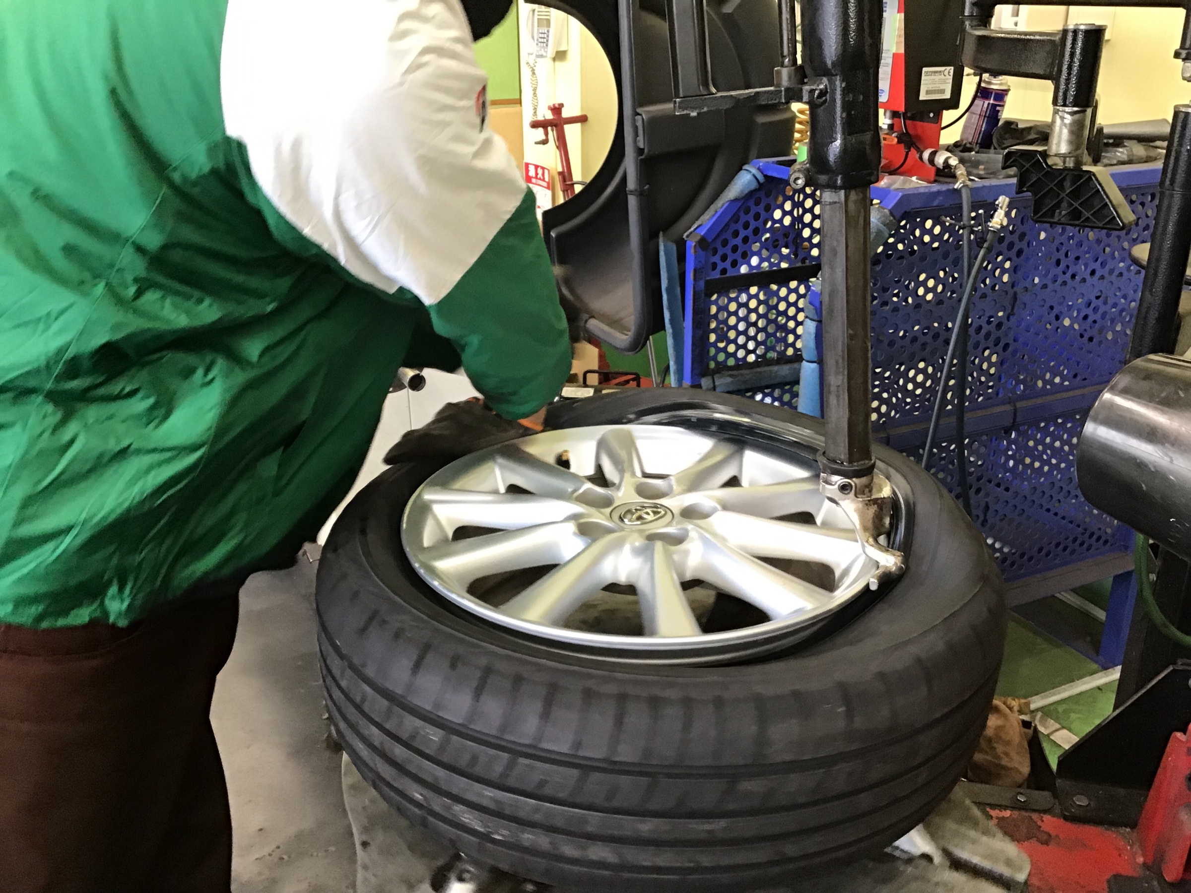 それではさっそく青柳スタッフによってタイヤを組んでもらいましょう♬
