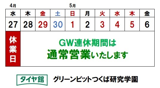 ゴールデンウイーク連休も営業