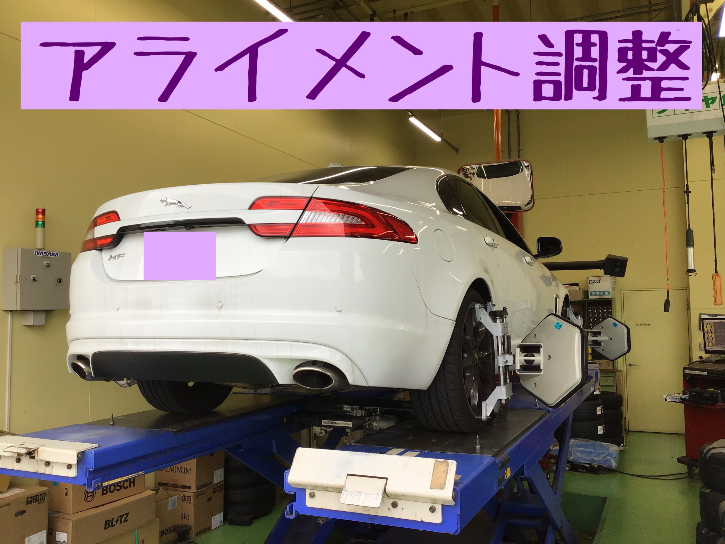 本日はジャガーXFのアライメント調整です!