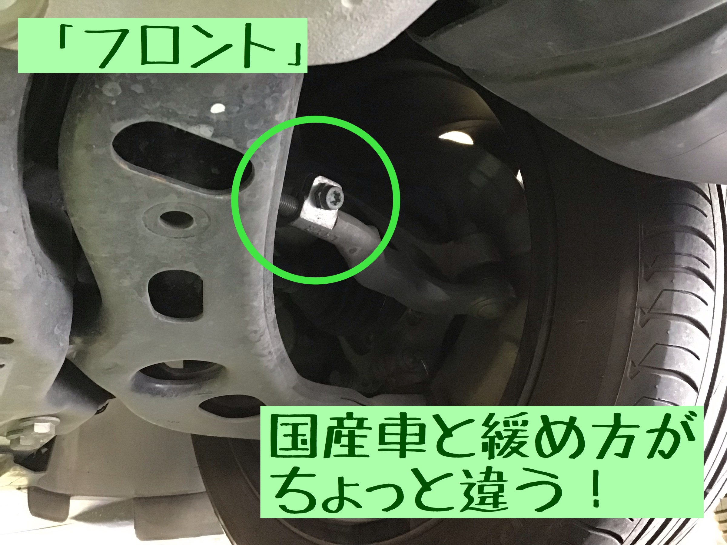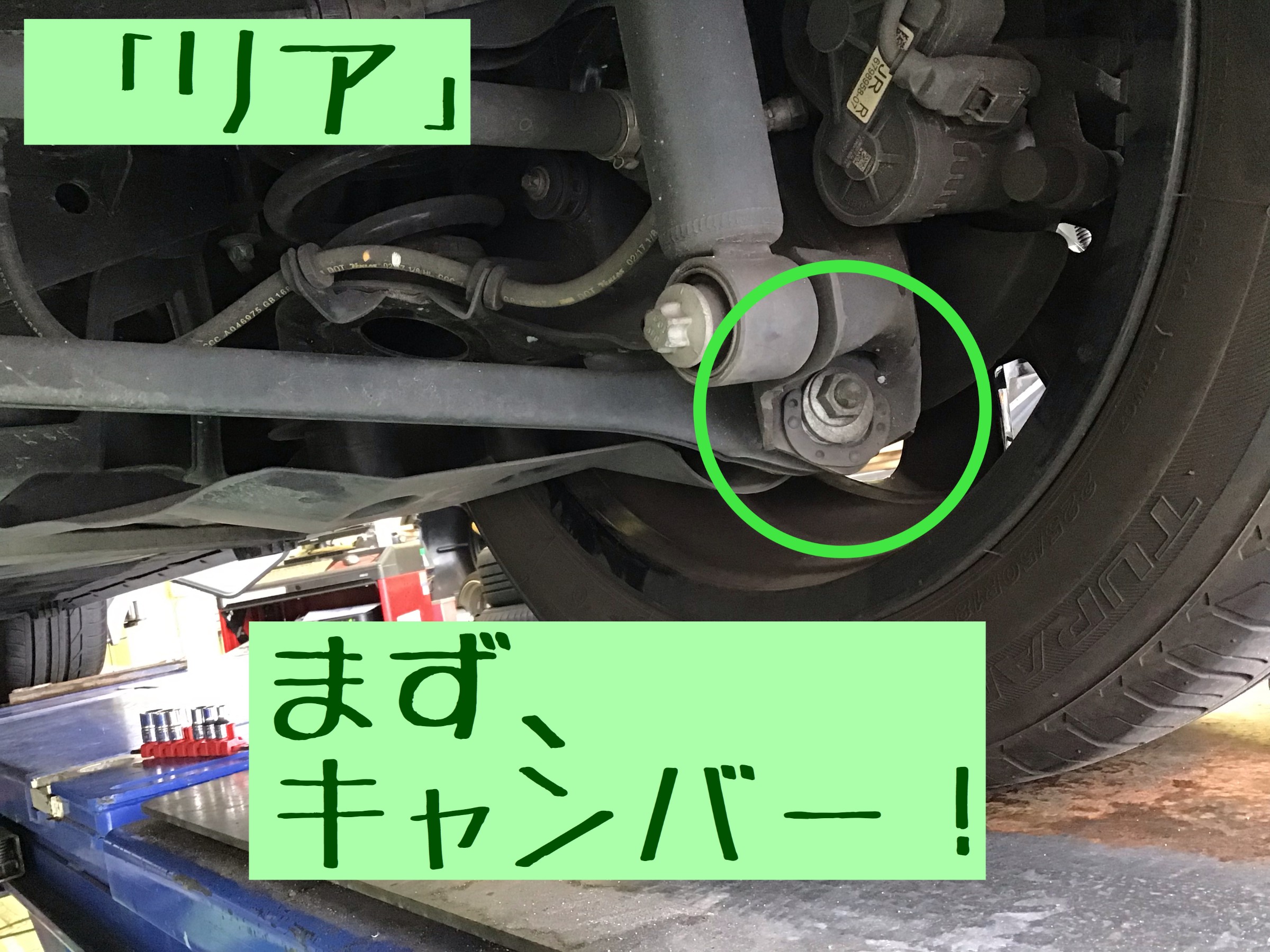 そして、国産車ではまずない要領でリアのトゥを調整していきます!