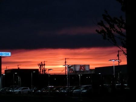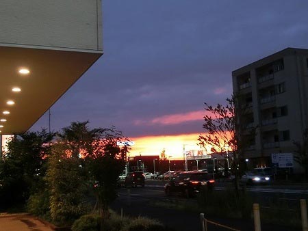 ・・・ということは、と思ってお店の西側を見に行くと、燃えるような夕焼け。