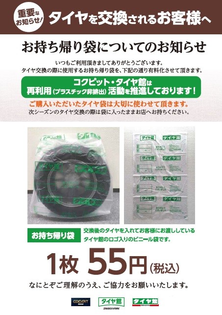 タイヤお持ち帰り袋 有償化についてのお知らせ