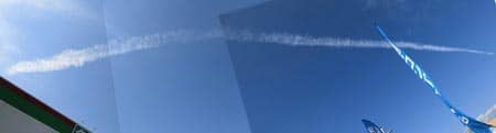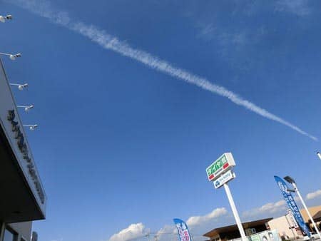 ちょっと曲がってますが、お店の向こうまで続く長いひこうき雲だったんですよ!