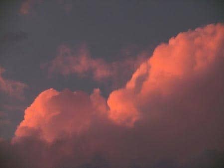 夕焼けに照らされて、茜色に染まった雲も見つけたのでヽ(´▽`)カメラ!カメラ!