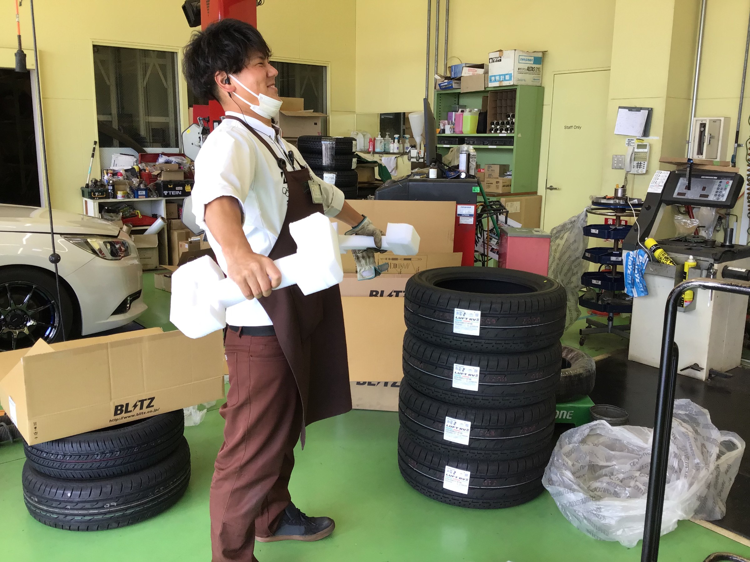 筋トレを始めた西山スタッフ╮( •́ω•̀ )╭ヤレヤレ