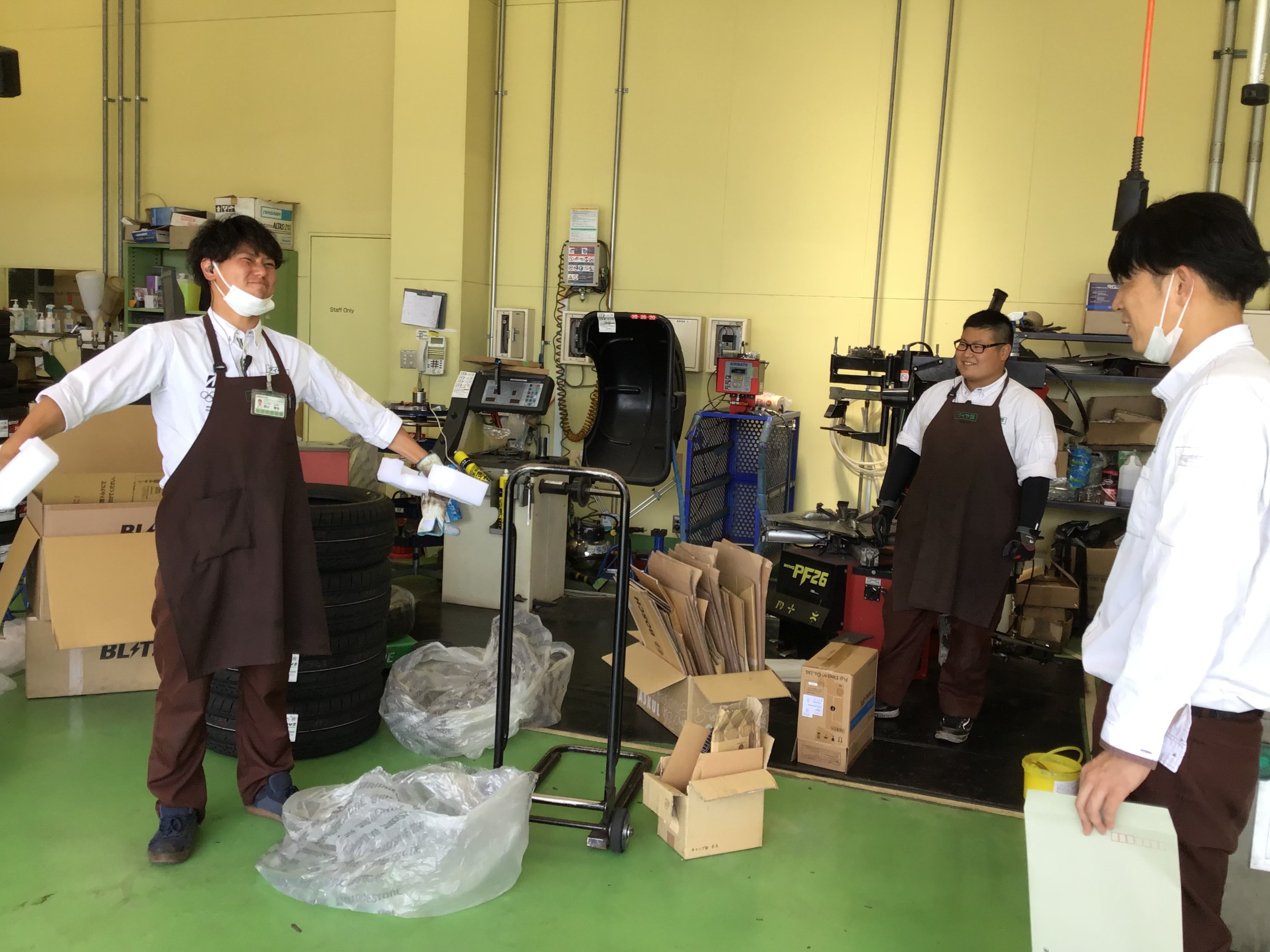 作業中の竹貫スタッフ(右奥)を捕まえて