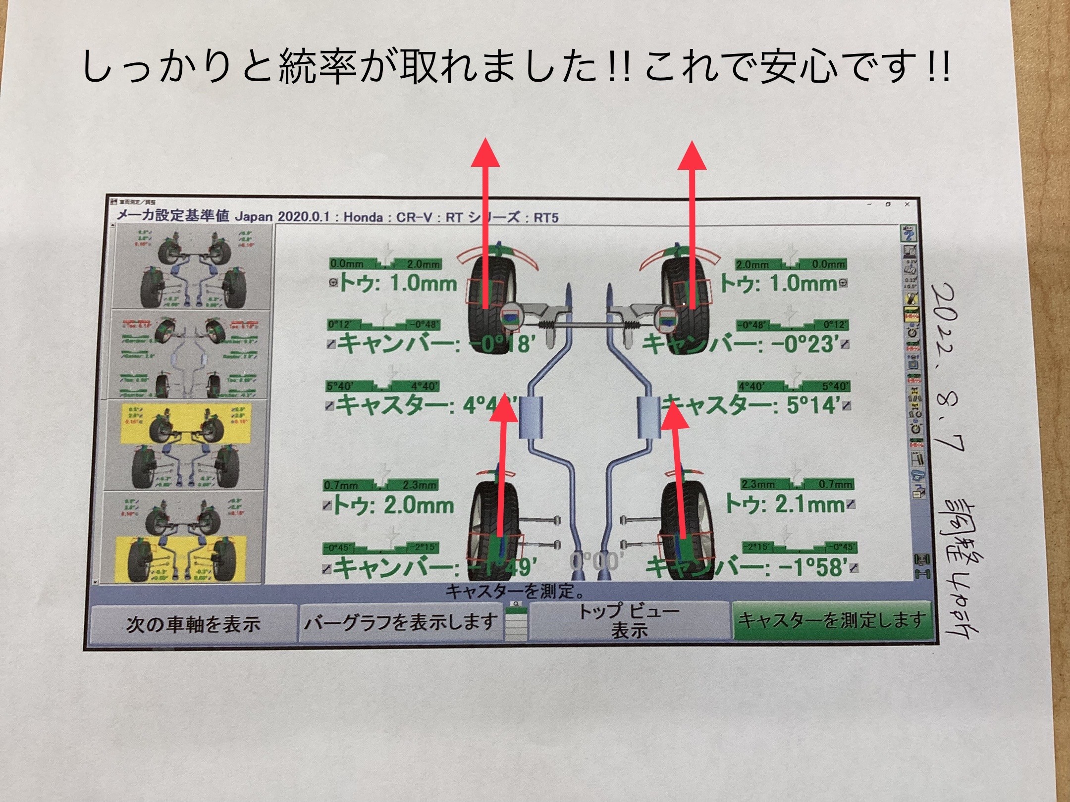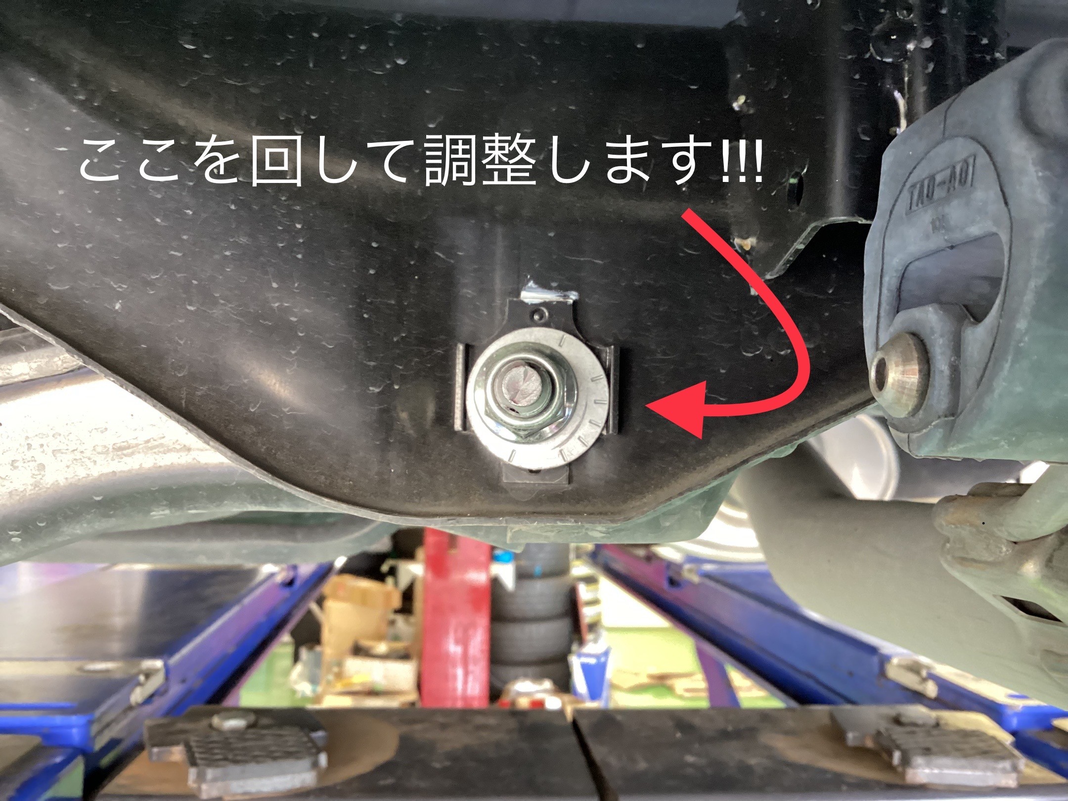 これを左右で規定値に調整させていただき、リアの調整は終了です!
