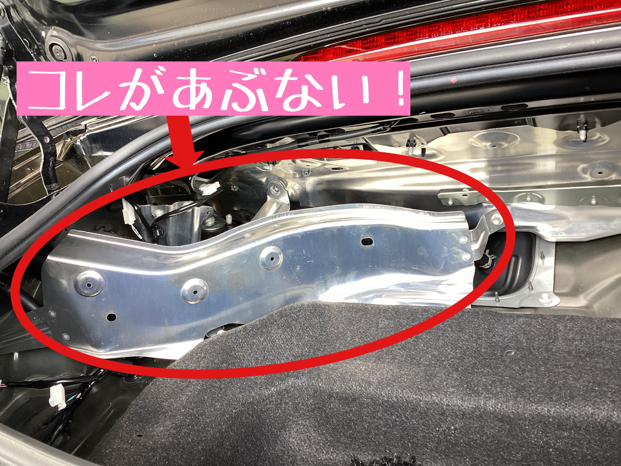 トランクを開け、カバー類を外していくと最初の壁が現れます!!