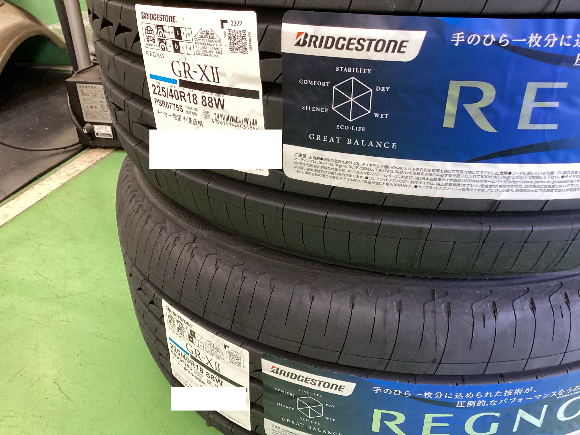 今回交換したタイヤは、「ブリヂストン REGNO GR-XⅡ 225/40R18と255/35R18」です!