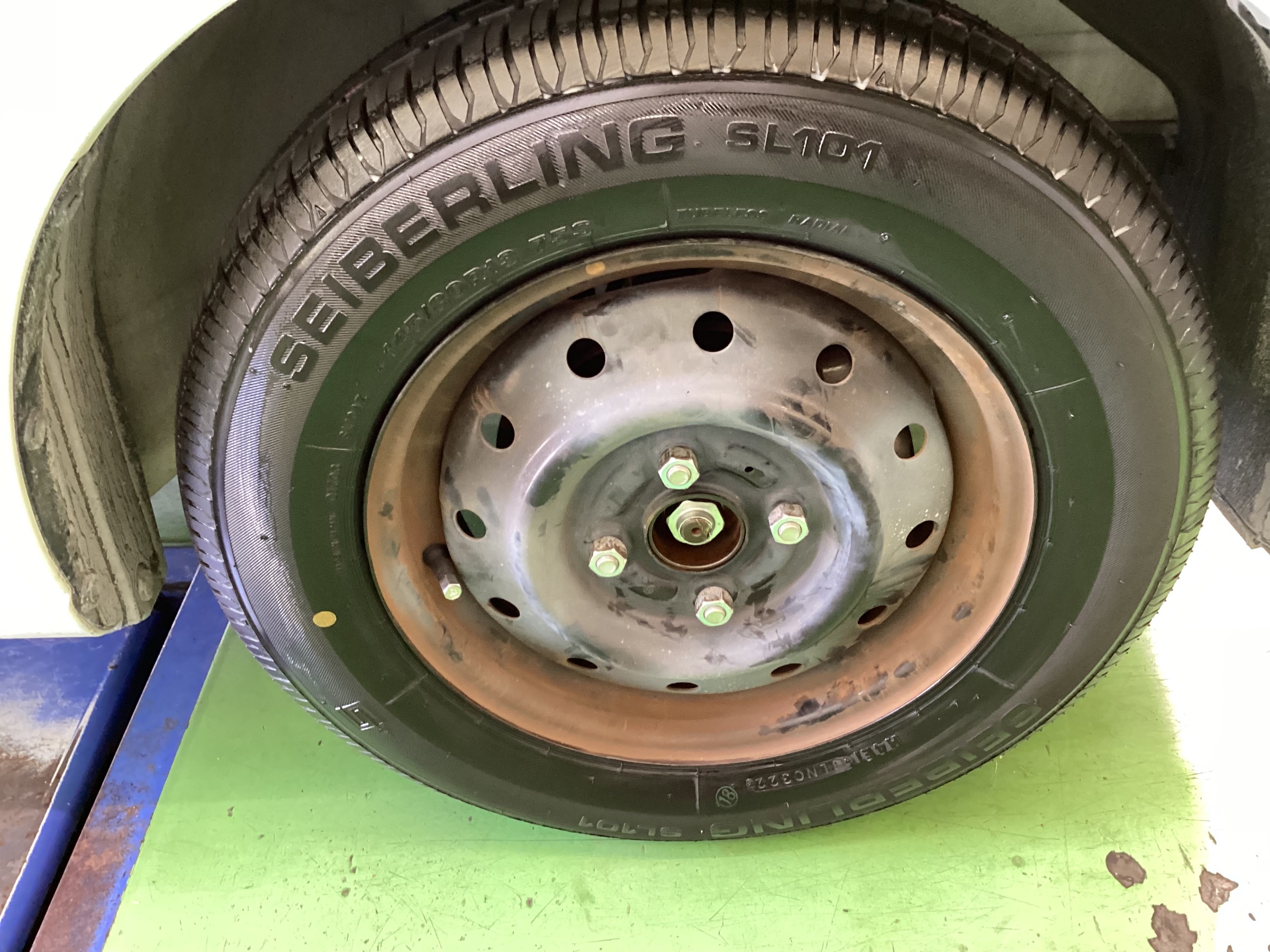 さて今日は「MAZDA キャロル」タイヤ交換&ハブ防錆施工ですd( ̄  ̄)