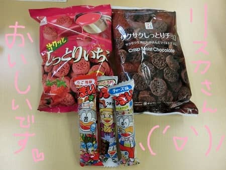 リスカさんを代表するお菓子、しっとりチョコの仲間「しっとりいちご」が施されていました。