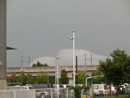大きく広がった灰色の雲の下に、さらに白い雲があるんです。