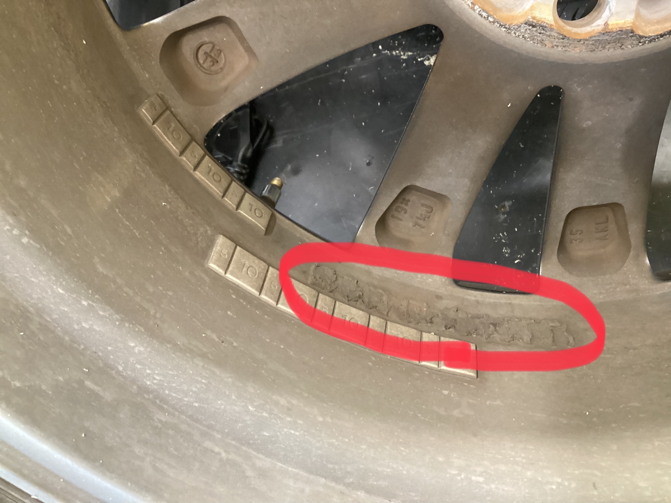 赤丸の所は、以前のタイヤ交換時の、両面テープの残りですね!