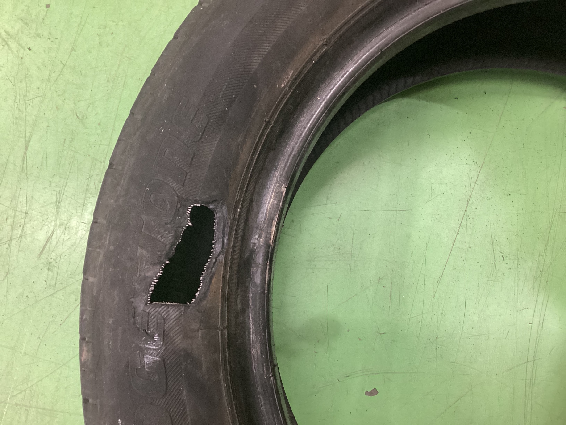 パンクに気づかず、走り続けてしまうとこのように修理不可能になってしまいます。