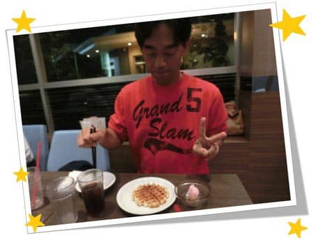 店内にあったワッフルメーカーで、焼き立てワッフルを焼いたリーダー…