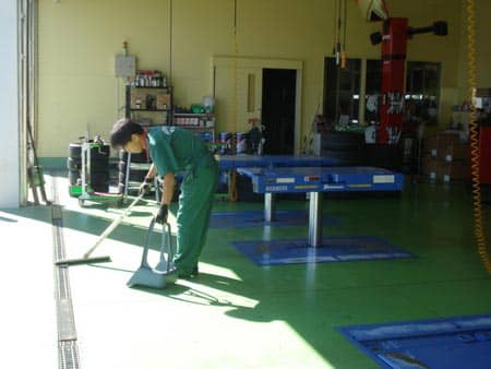 リーダーがリフトを上げて、リフトの下までお掃除中です。