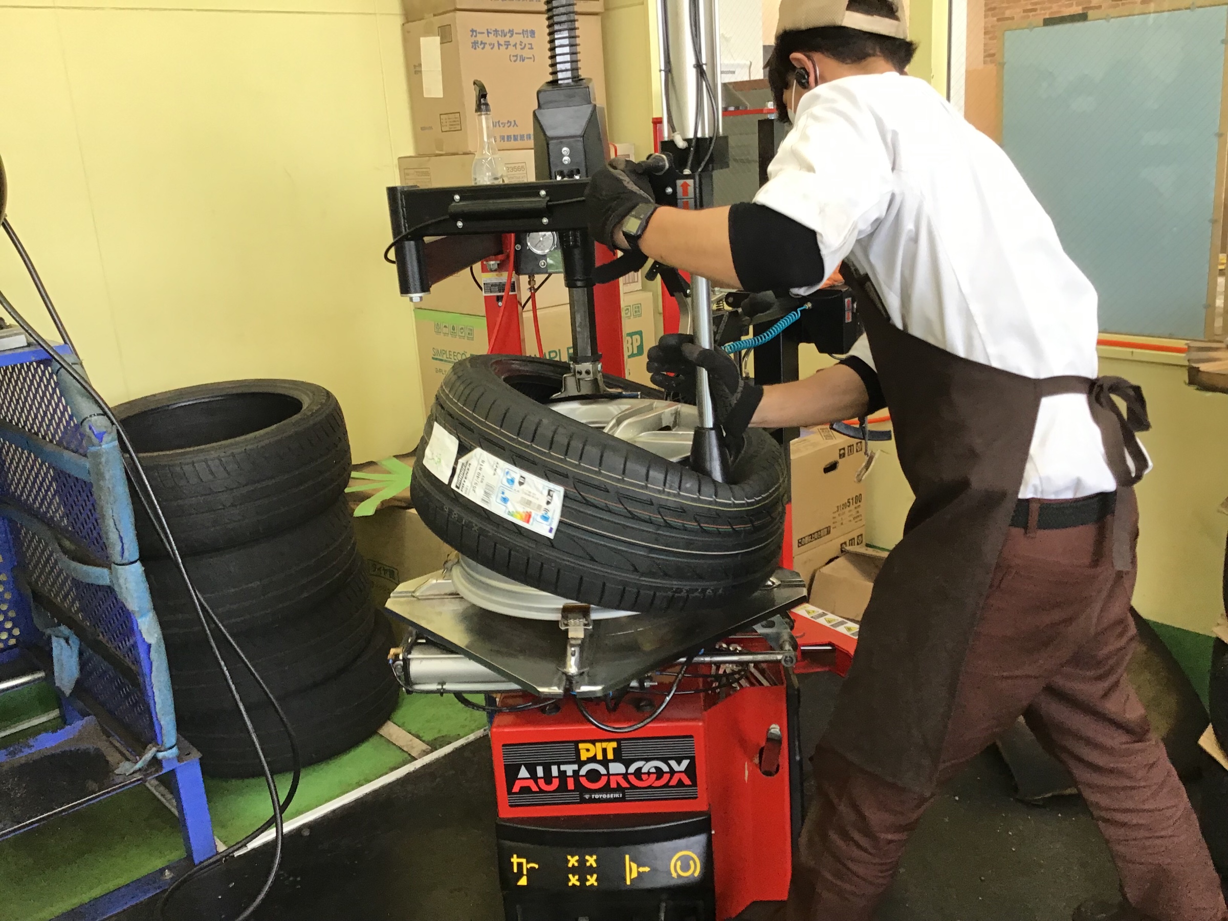 新品タイヤを組み込みます。
