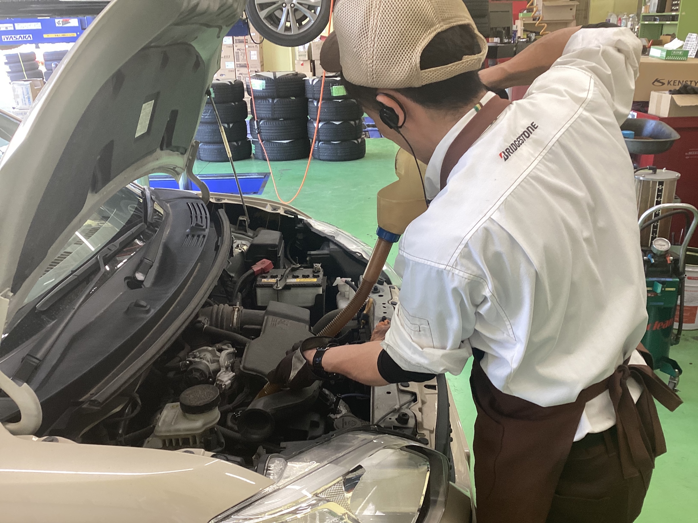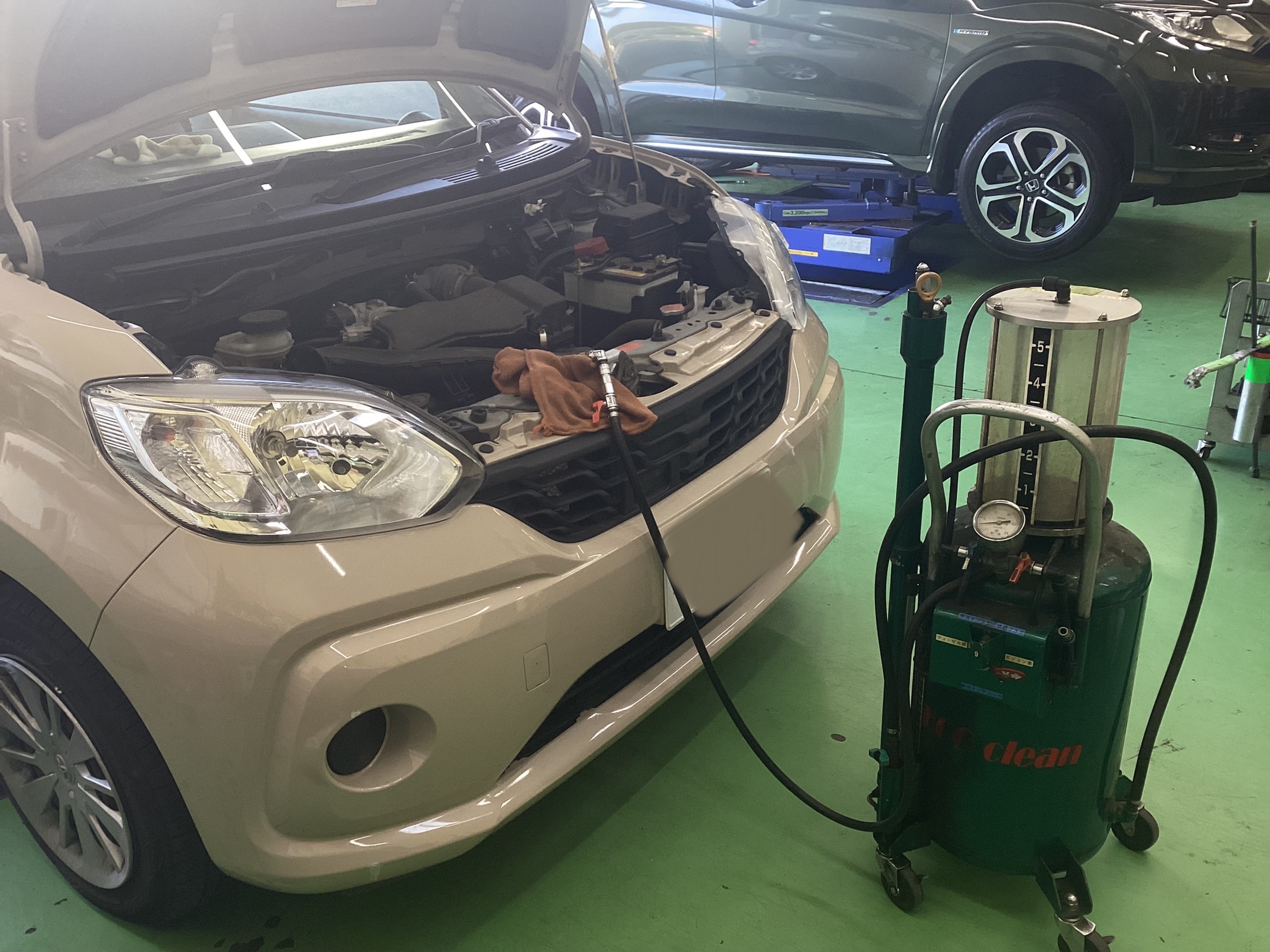 作業場にお車を入庫し点検したところ、エンジンオイルの交換目安が過ぎていたことに気づき、急遽エンジンオイル交換も行うことになりました!(^^)!