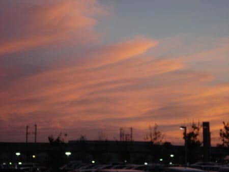 お店のカウンターから、ふと外を見ると夕焼け空がとてもきれいでした。