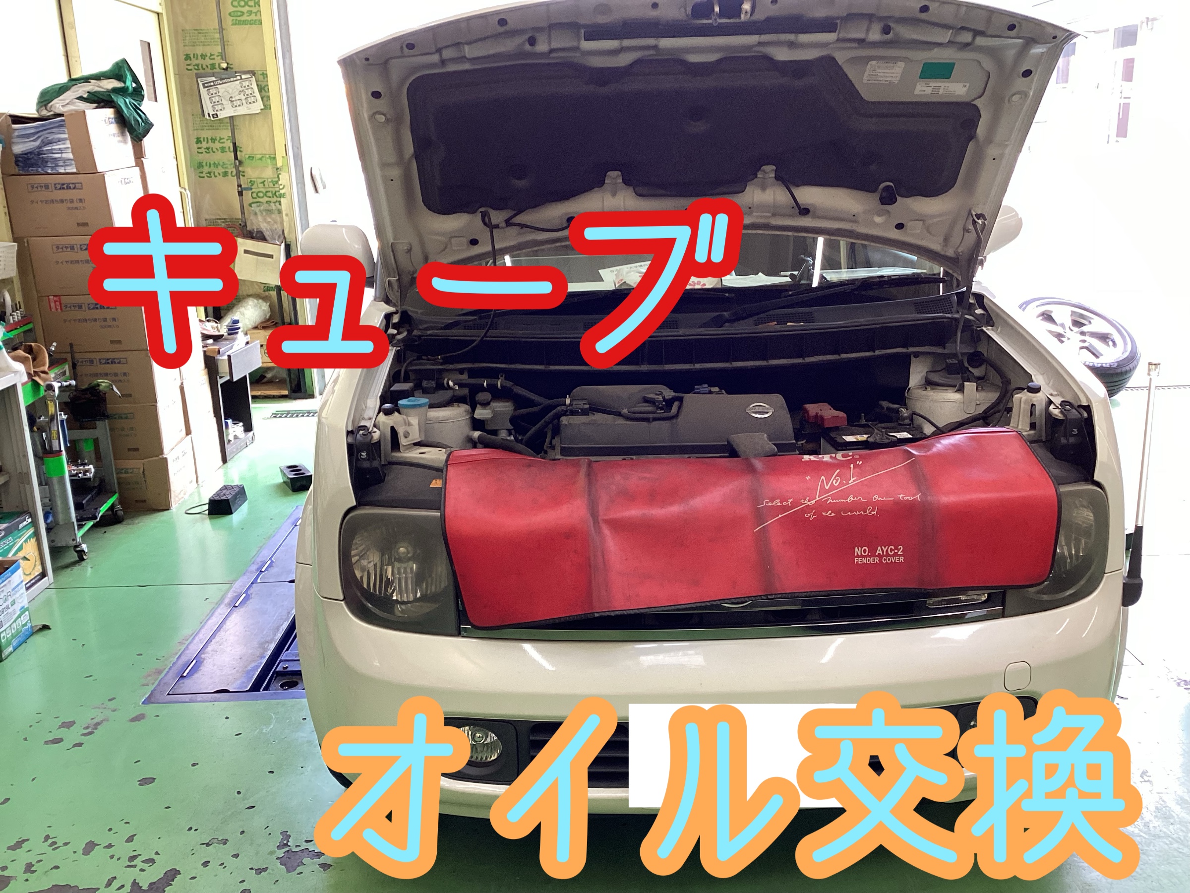 本日は日産キューブ(Z11型)のエンジンオイル交換をしましたのでご紹介いたします!!