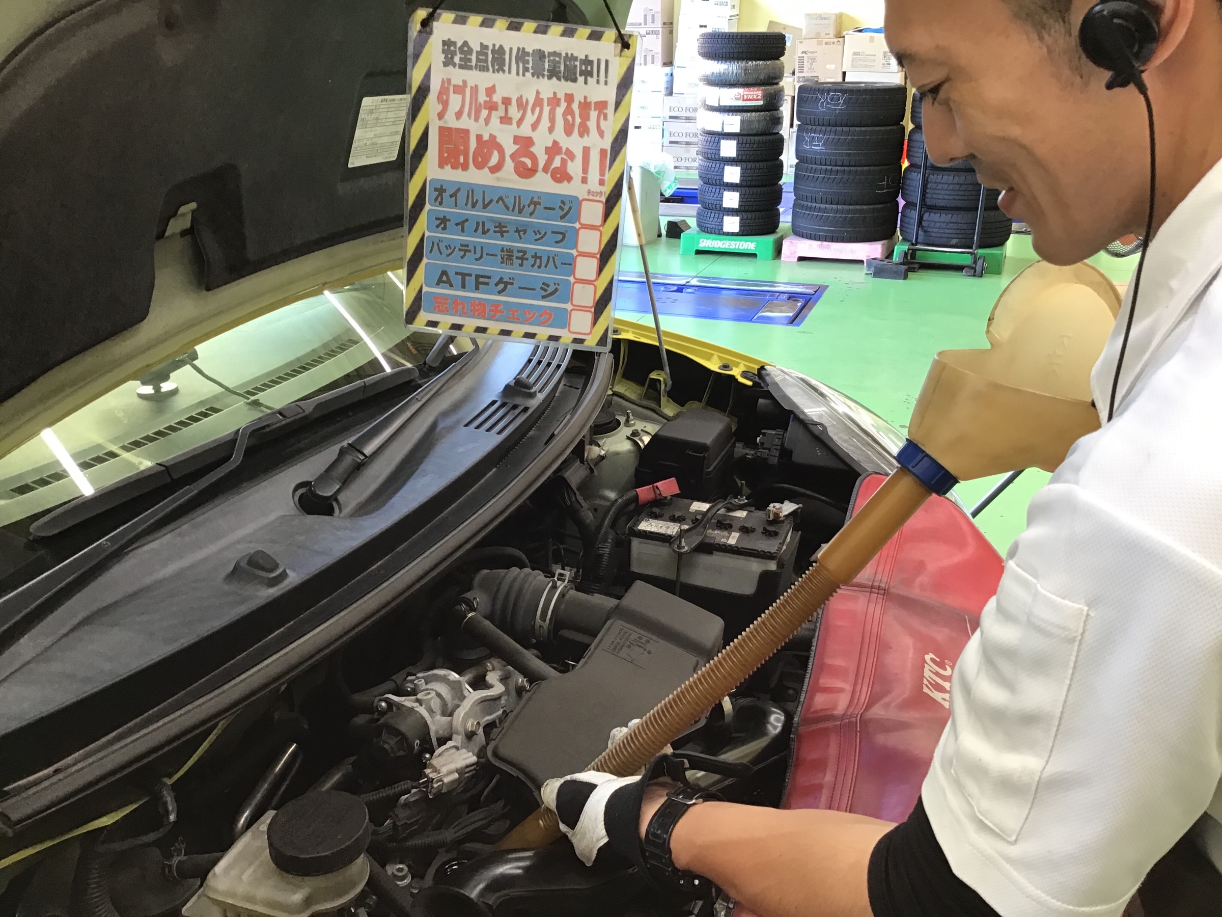 オイルを抜いて、オイルフィルターも交換したら、新油をいれていきます٩( ᐛ )و