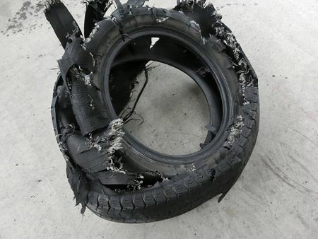 これが最終的に、(画像1枚目)のようにタイヤの破裂を招いてしまいます。