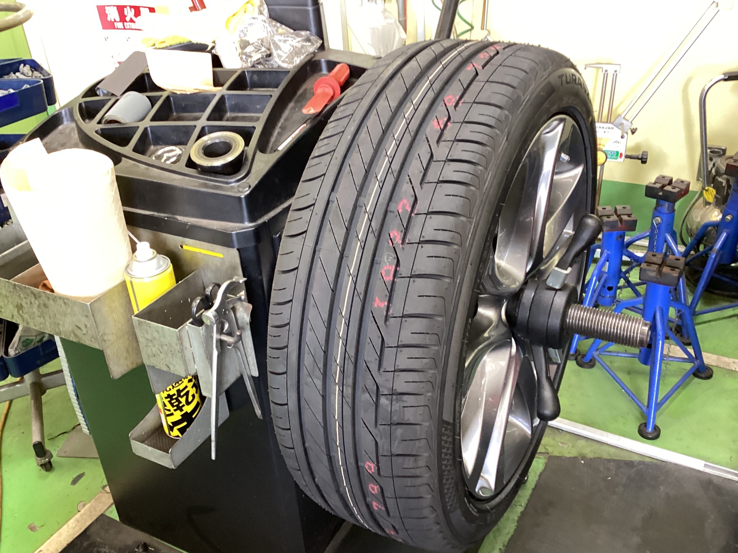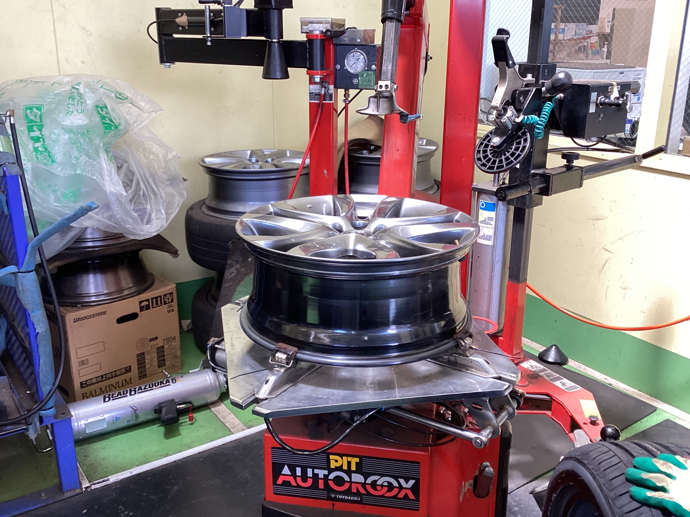 バランサーという機械でぐるぐる回して、タイヤとホイールのバランスをとっていきます٩(*´︶`*)۶